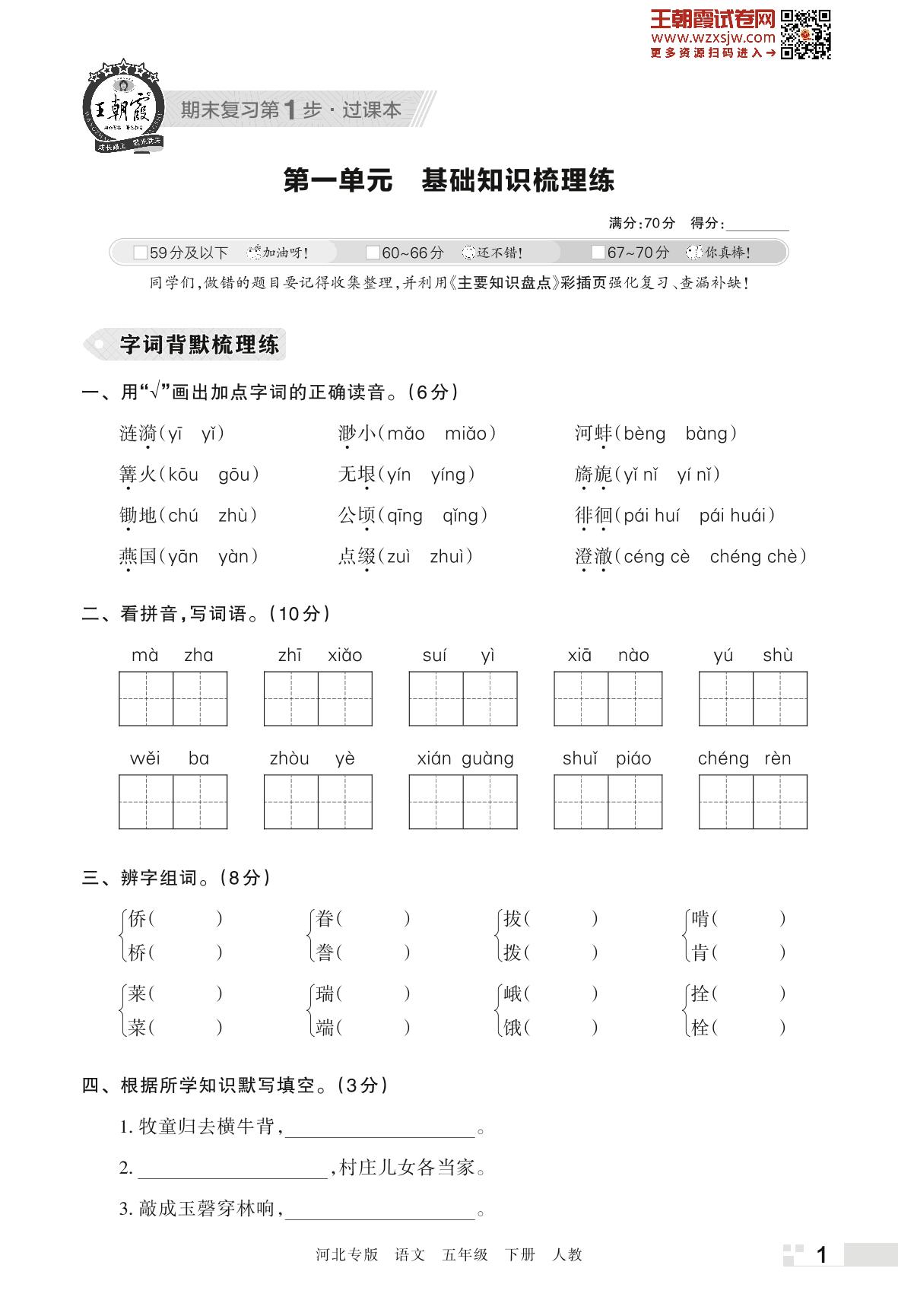王朝霞期末过课本——第一单元 基础知识梳理练五年级下册语文(人教版)_R230419142931322