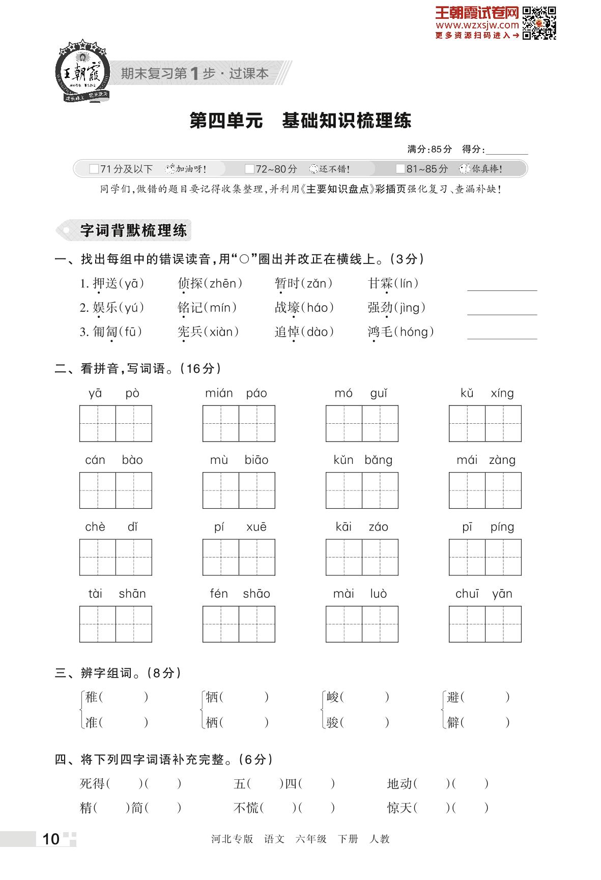 王朝霞期末过课本——第四单元 基础知识梳理练六年级下册语文(人教版)_R230419143441369