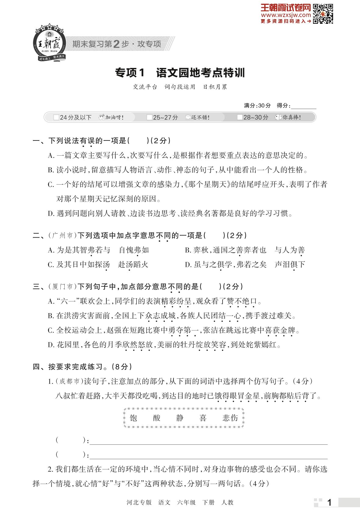 王朝霞期末专项卷——语文园地考点特训六年级下册语文(人教版)_R230419143442026【1】