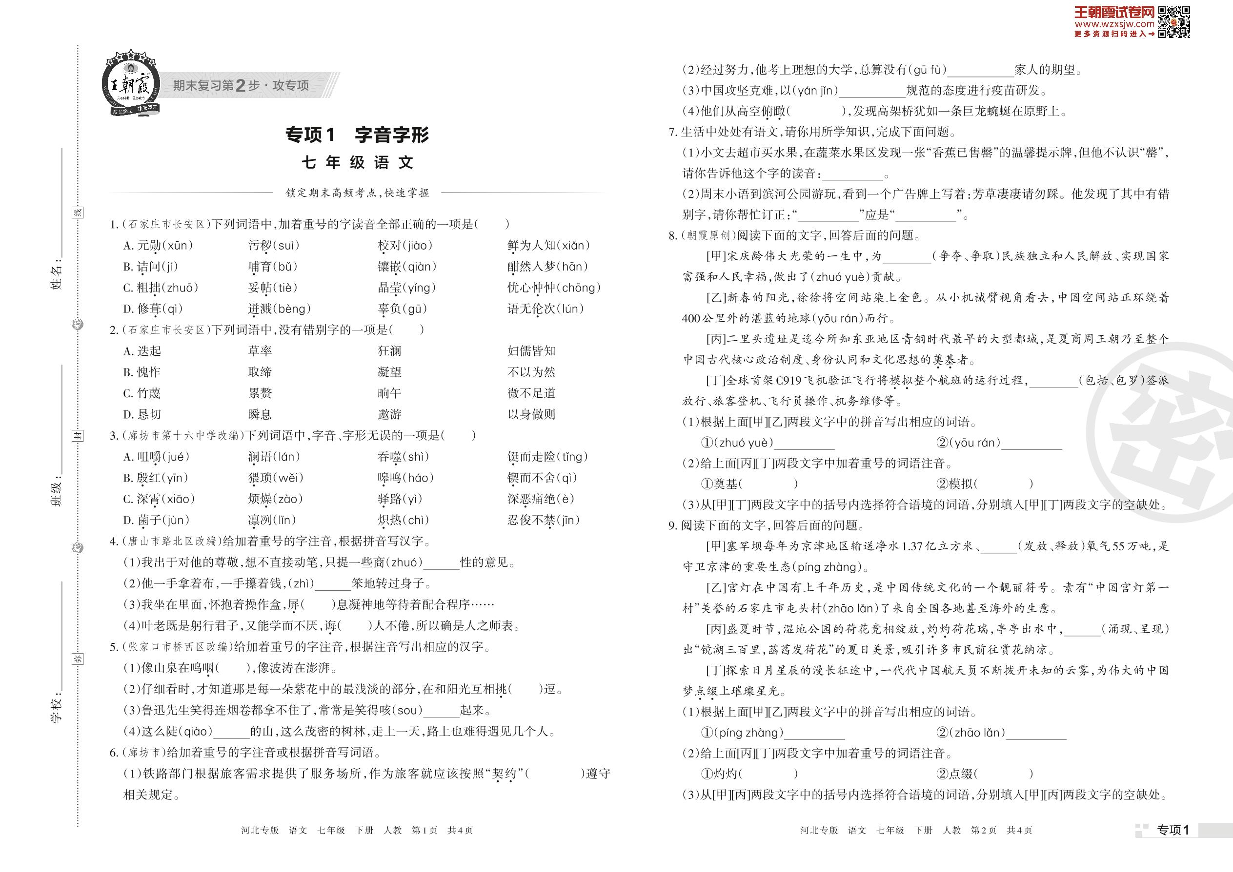 王朝霞期末专项卷——字音字形七年级下册语文(人教版)_R230419145035278【1】