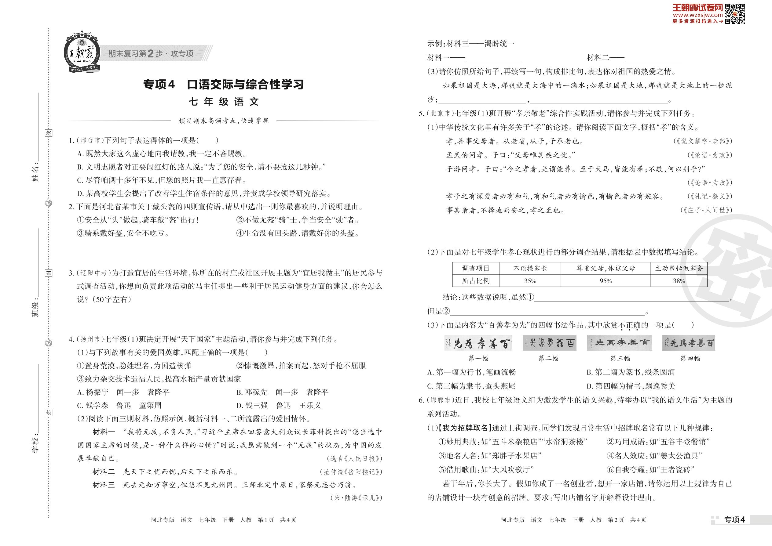 王朝霞期末专项卷——口语交际与综合性学习七年级下册语文(人教版)【4】