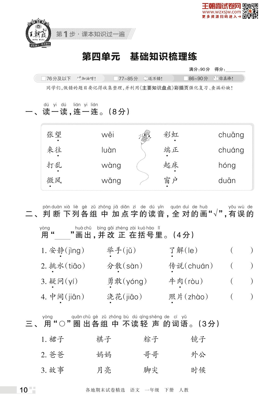 王朝霞期末过课本——第四单元 基础知识梳理练一年级下册语文(人教版)_R230419145037735