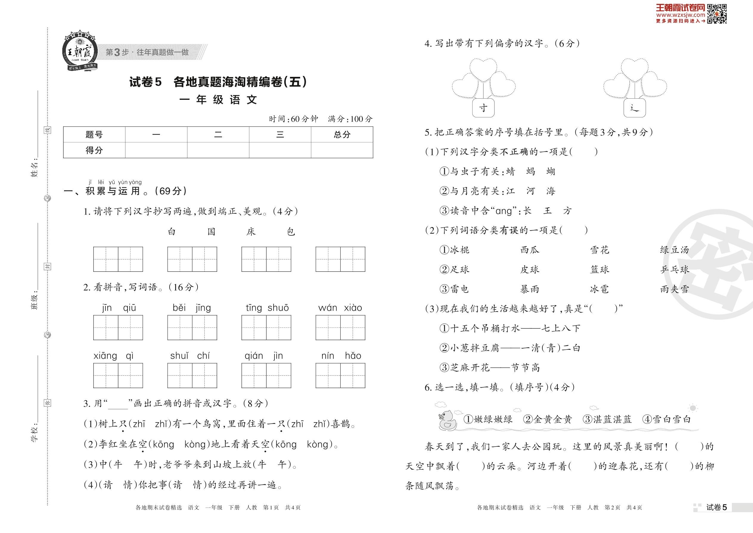 各地真题海淘精编卷(五)一年级下册语文(人教版)_R230419145040388【5】