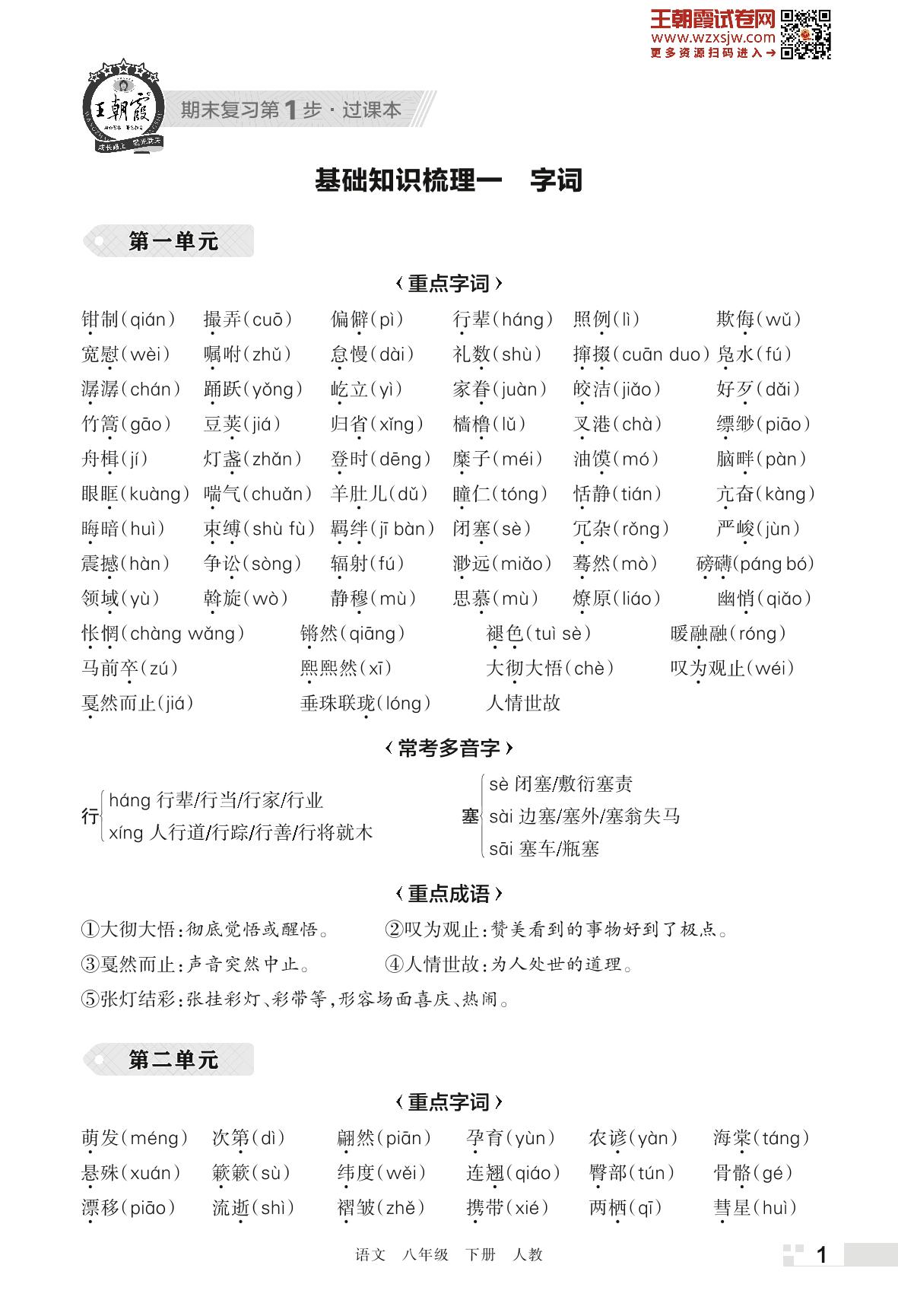 王朝霞期末过课本——基础知识梳理一 字词八年级下册语文(人教版)_R230419145547024
