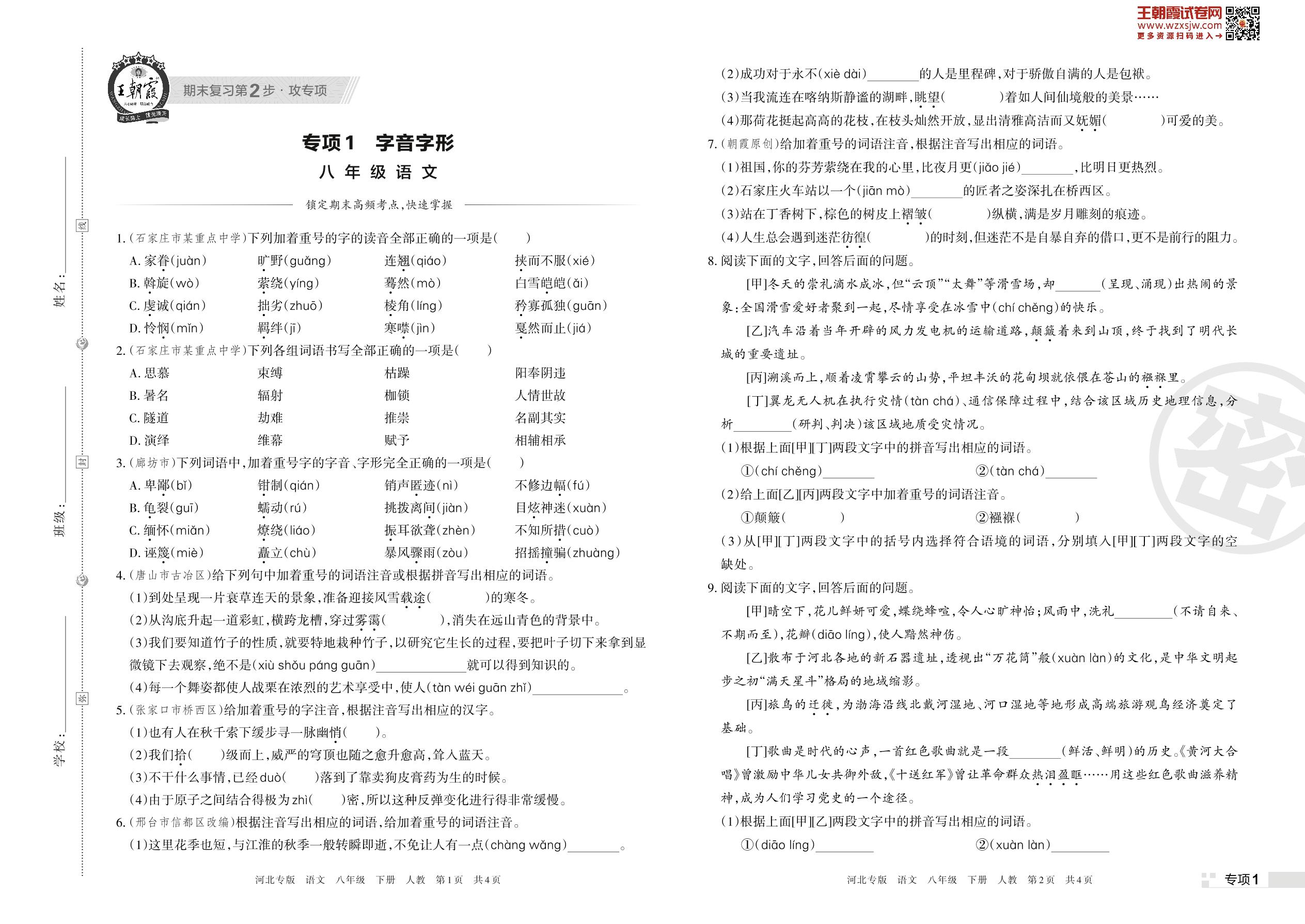 王朝霞期末专项卷——字音字形八年级下册语文(人教版)_R230419145549270【1】