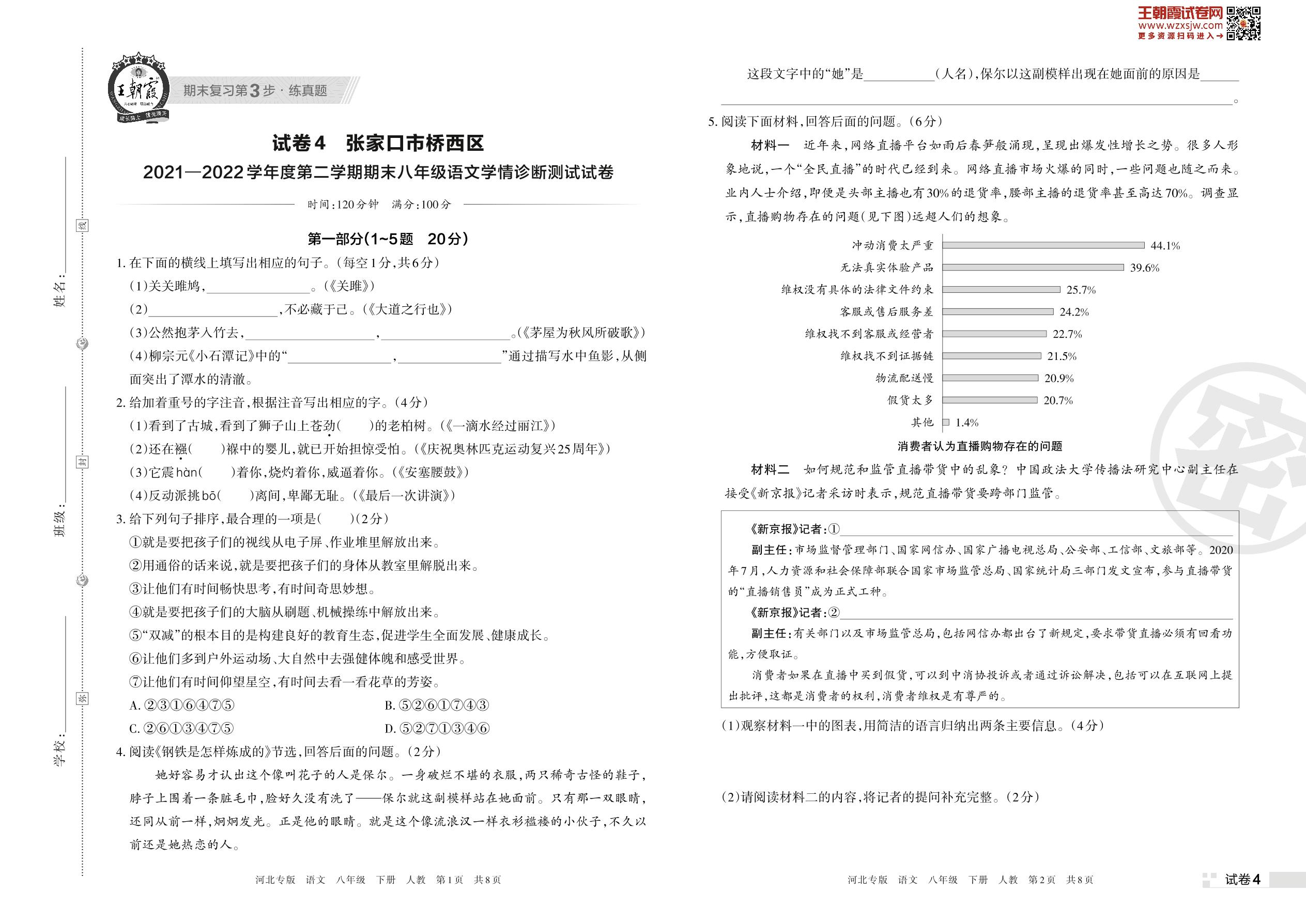 张家口市桥西区2021—2022学年度第二学期期末八年级语文学情诊断测试试卷(人教版)【4】
