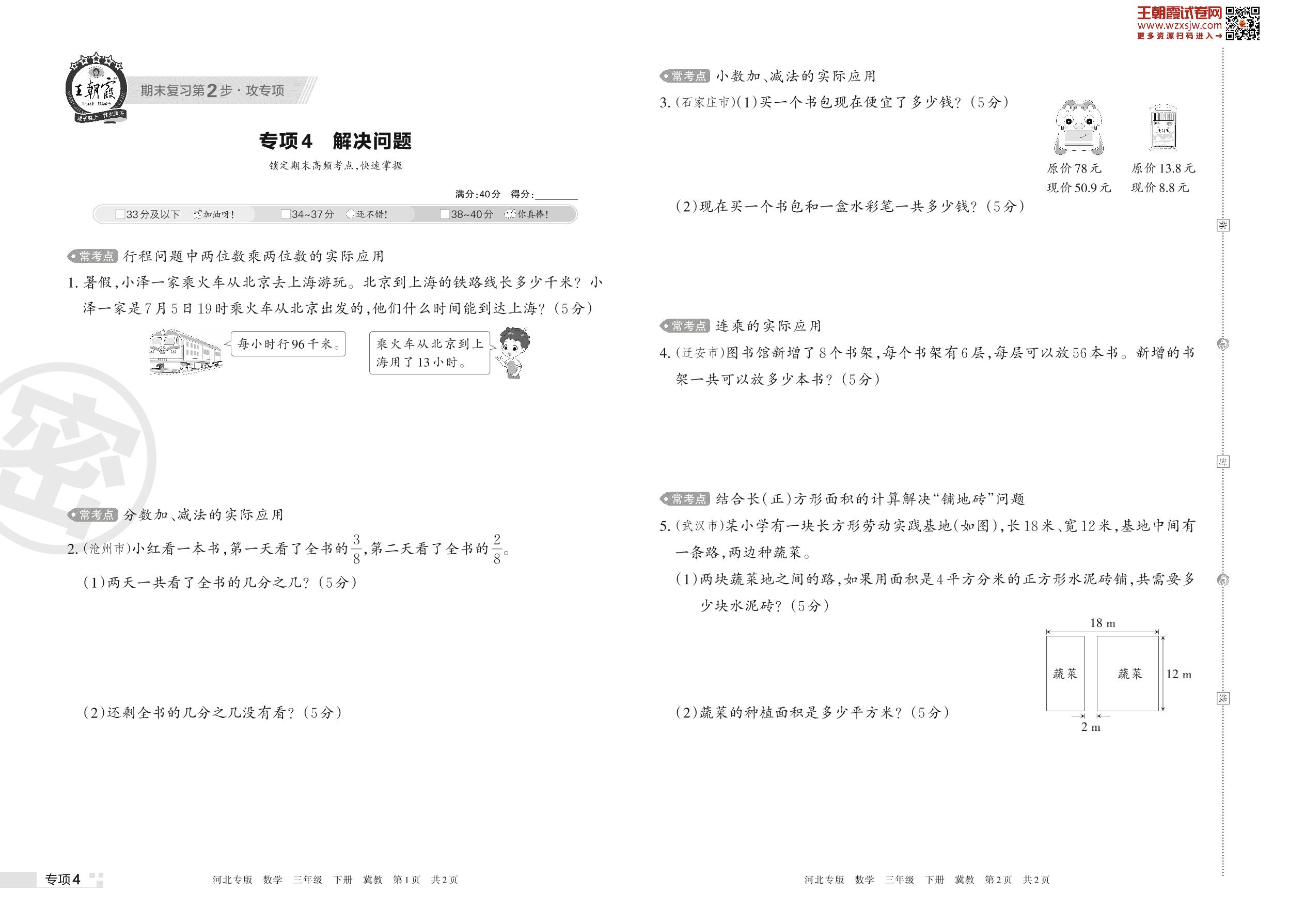 王朝霞期末专项卷——解决问题三年级下册数学(冀教版)_R230419150136444【4】
