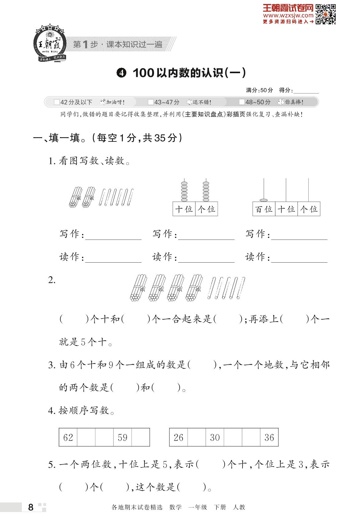 王朝霞期末过课本——4 100以内数的认识(一)一年级下册数学(人教版)