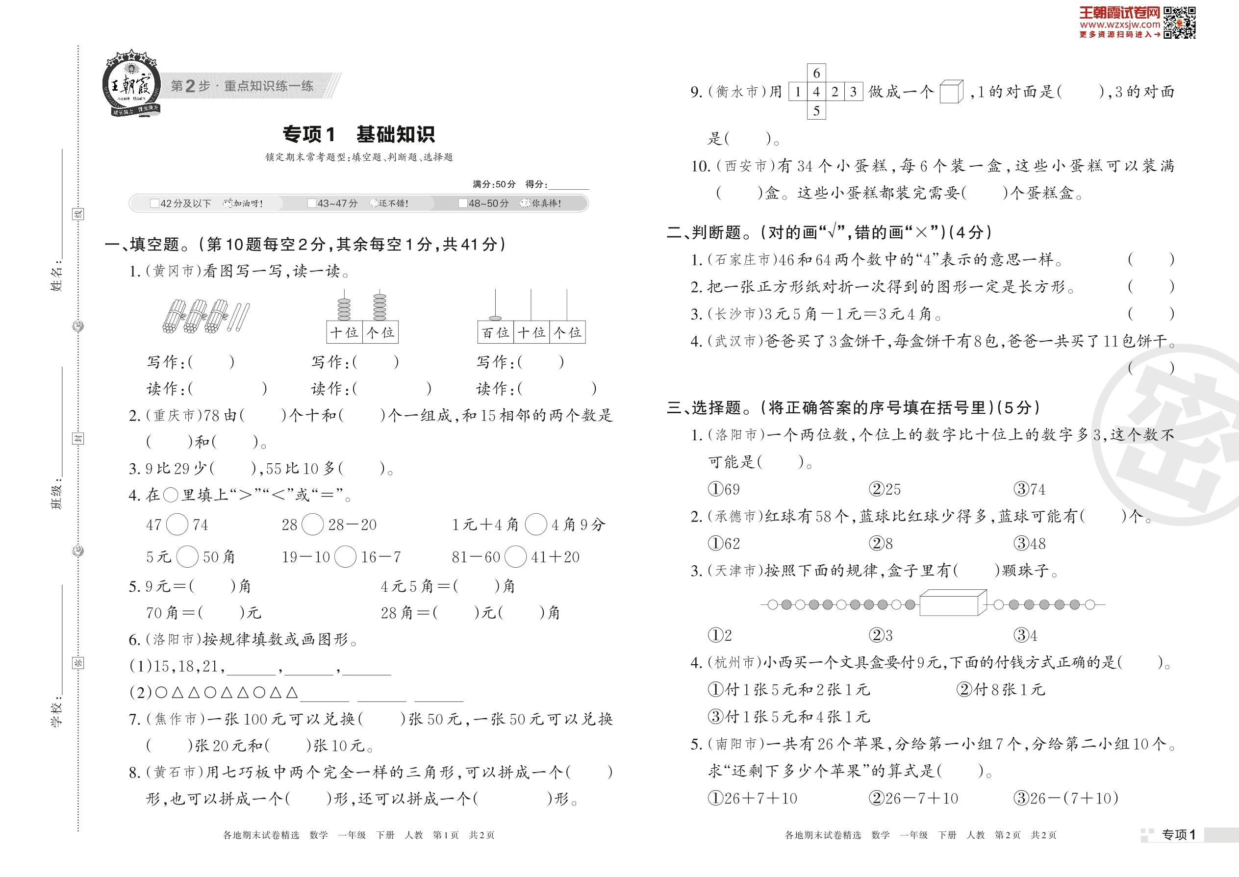 王朝霞期末专项卷——基础知识一年级下册数学(人教版)_R230419150253114【1】