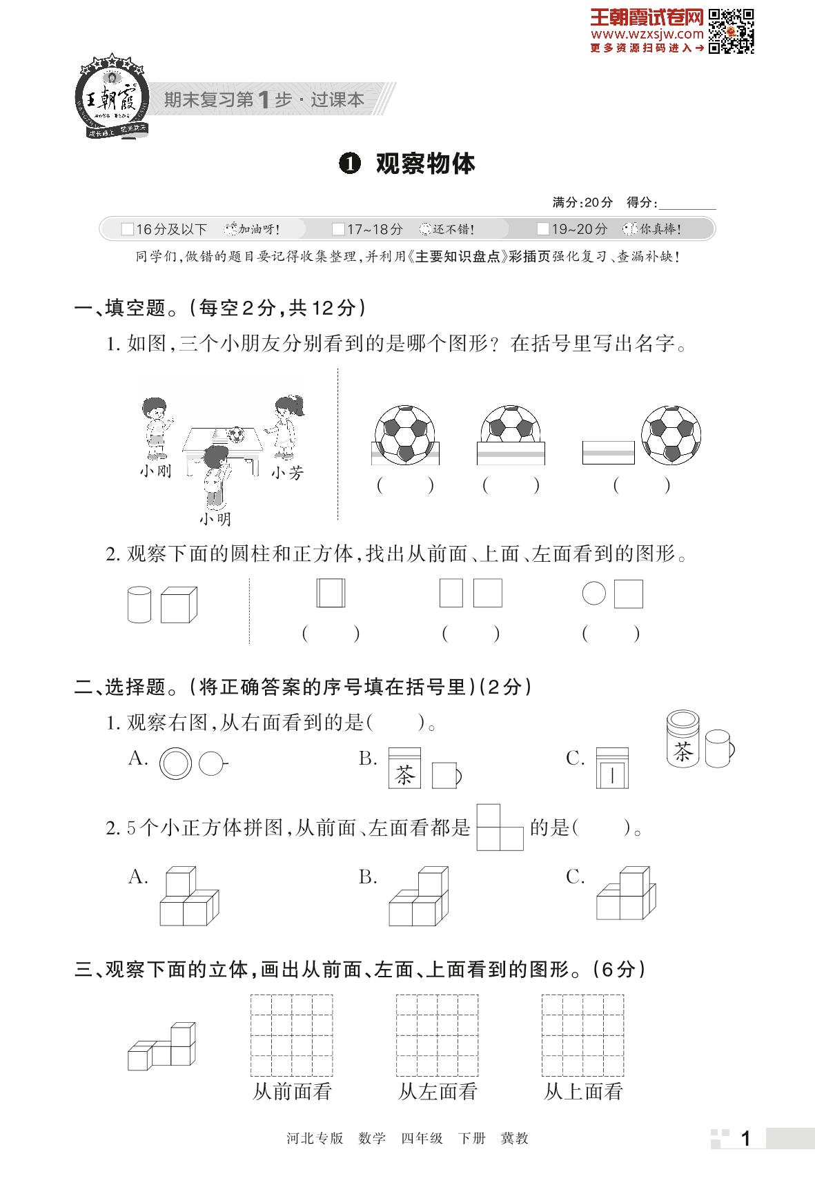 王朝霞期末过课本——1 观察物体四年级下册数学(冀教版)