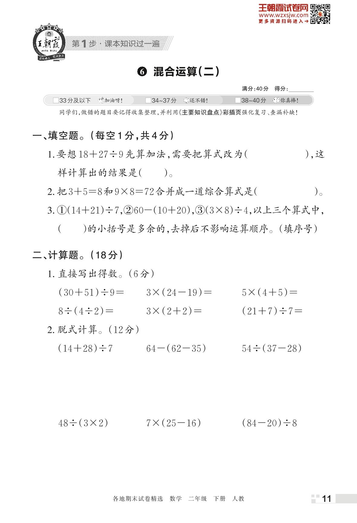 王朝霞期末过课本——6 混合运算(二)二年级下册数学(人教版)