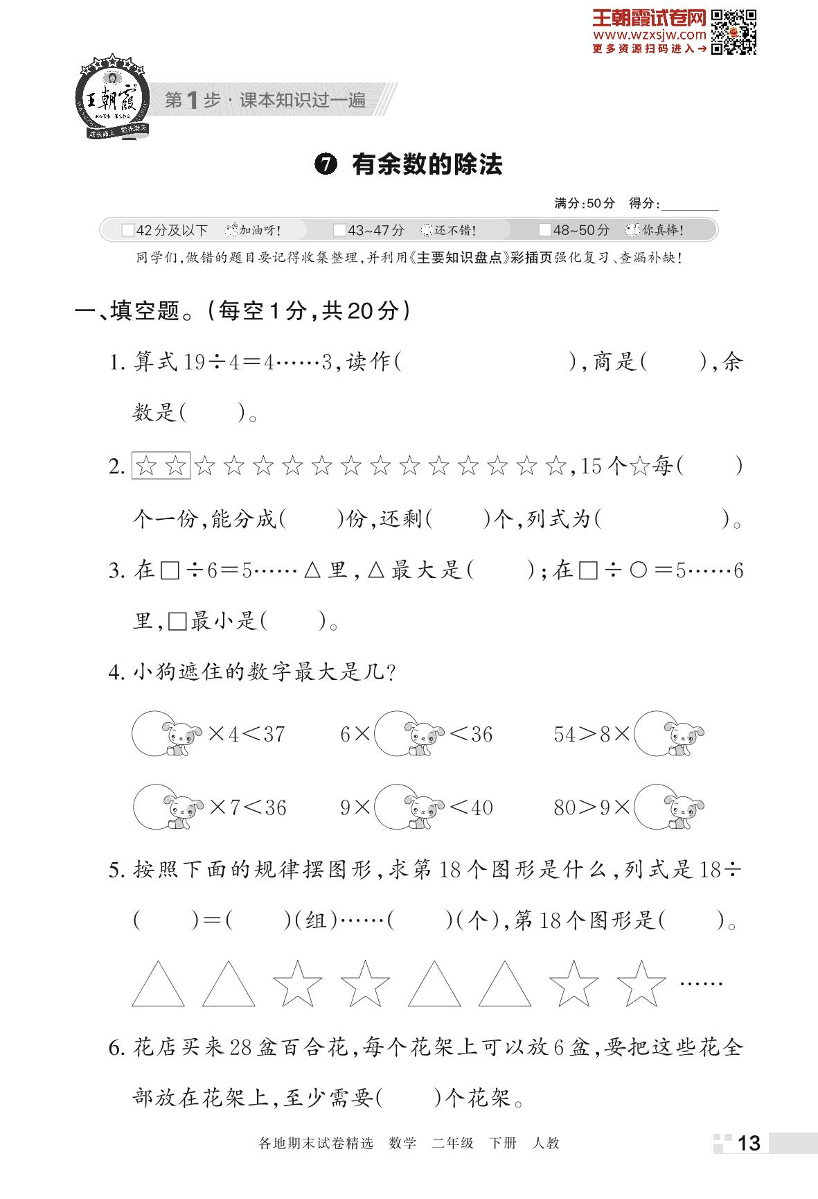 王朝霞期末过课本——7 有余数的除法二年级下册数学(人教版)
