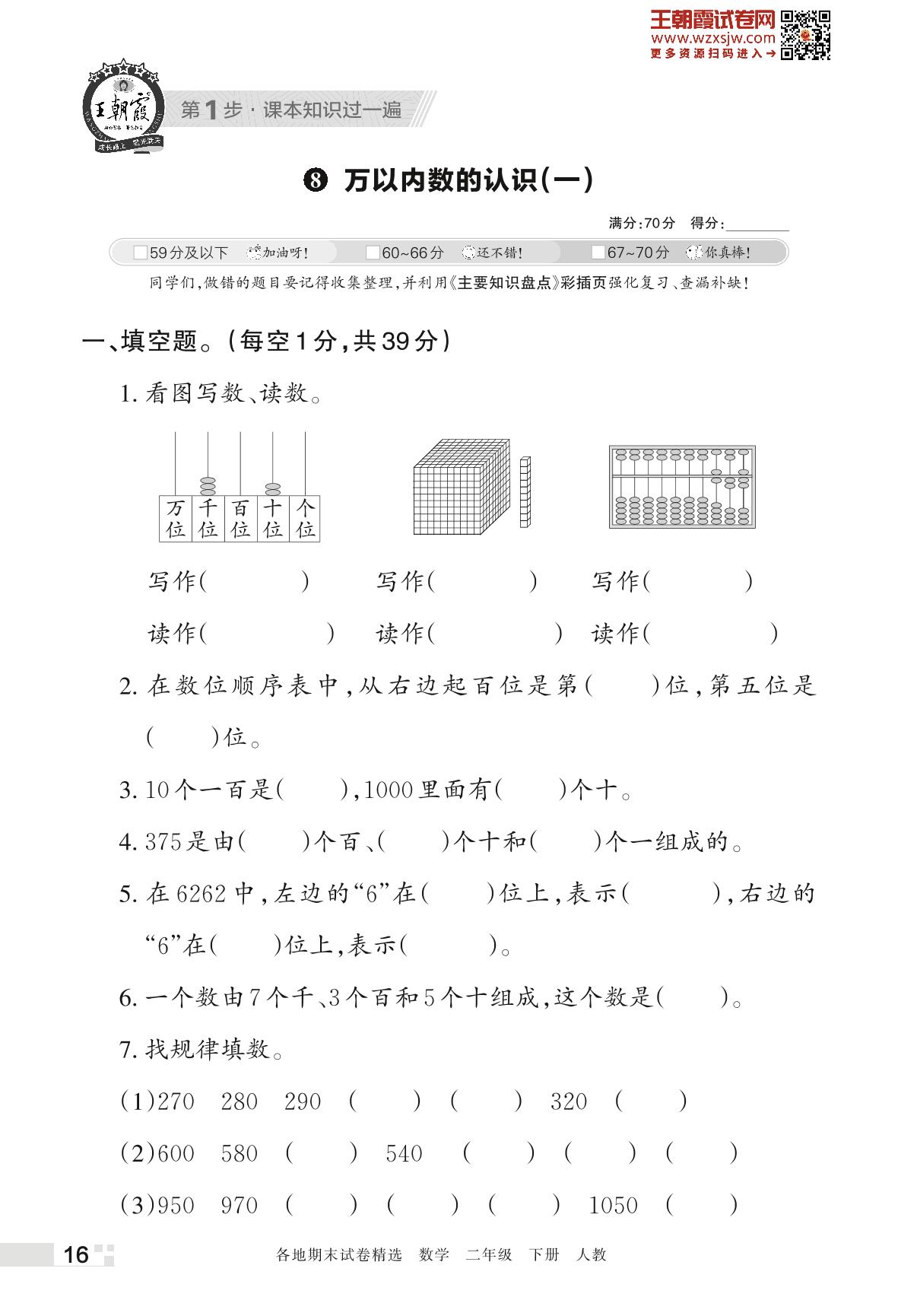 王朝霞期末过课本——8 万以内数的认识(一)二年级下册数学(人教版)
