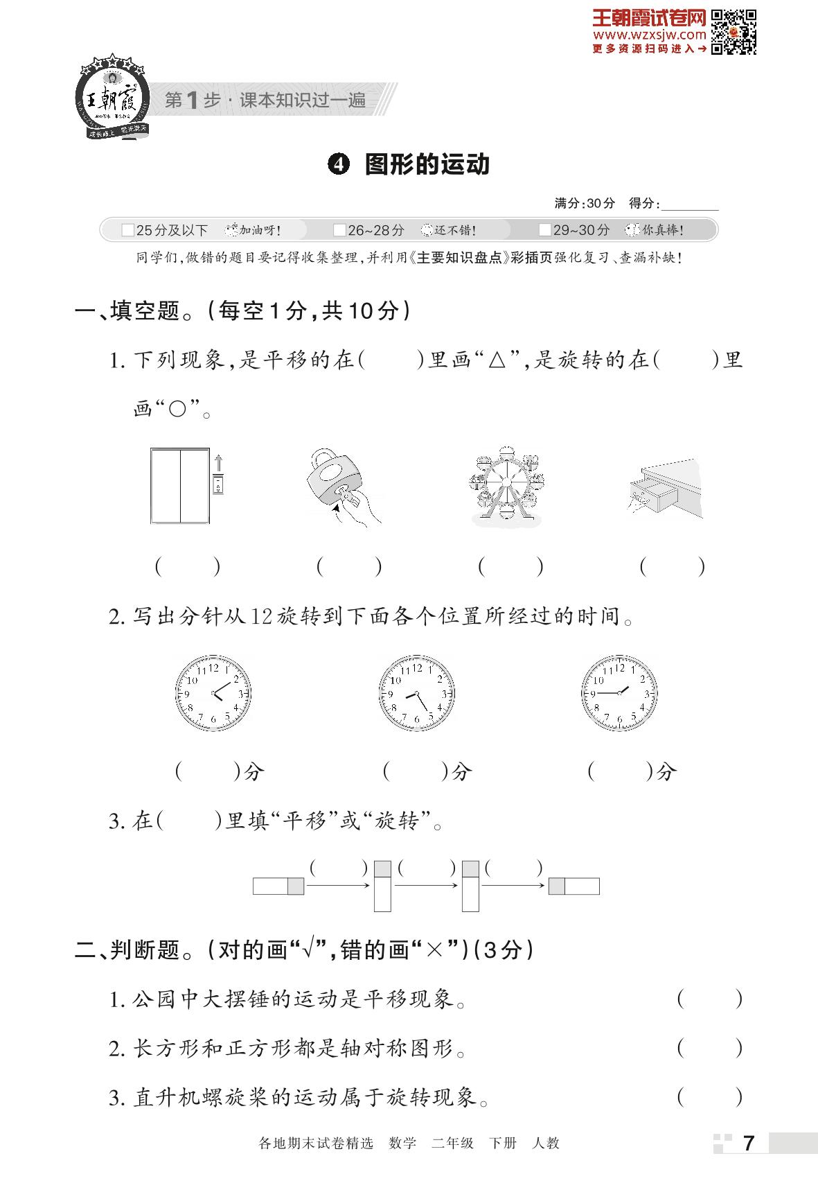 王朝霞期末过课本——4 图形的运动二年级下册数学(人教版)