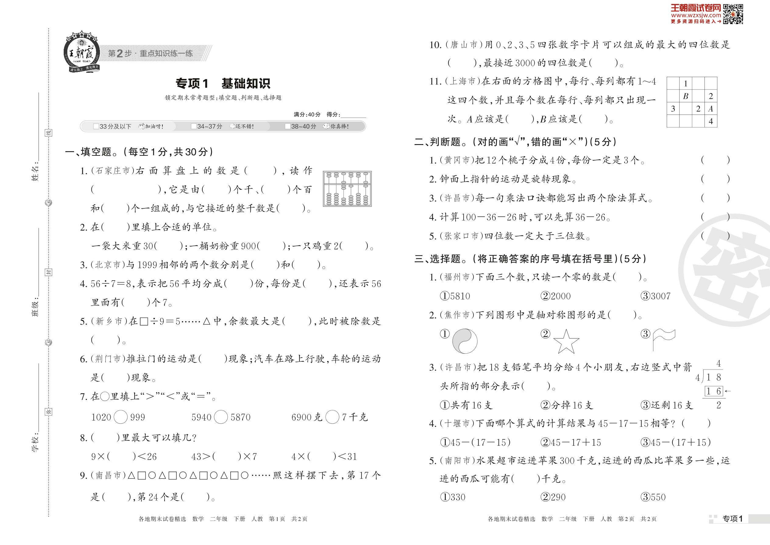 王朝霞期末专项卷——基础知识二年级下册数学(人教版)_R230419151035806【1】