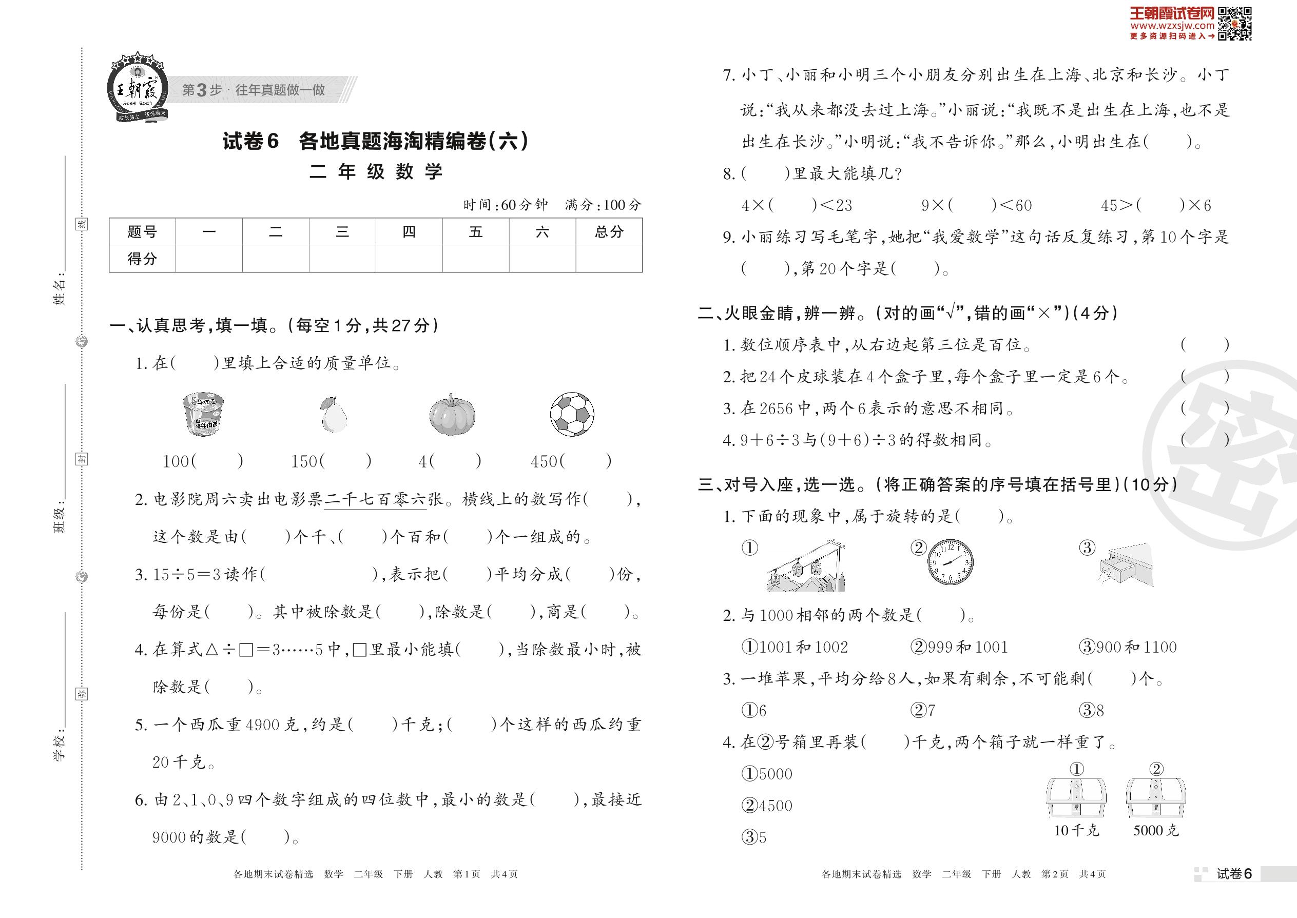 各地真题海淘精编卷(六)二年级下册数学(人教版)【6】