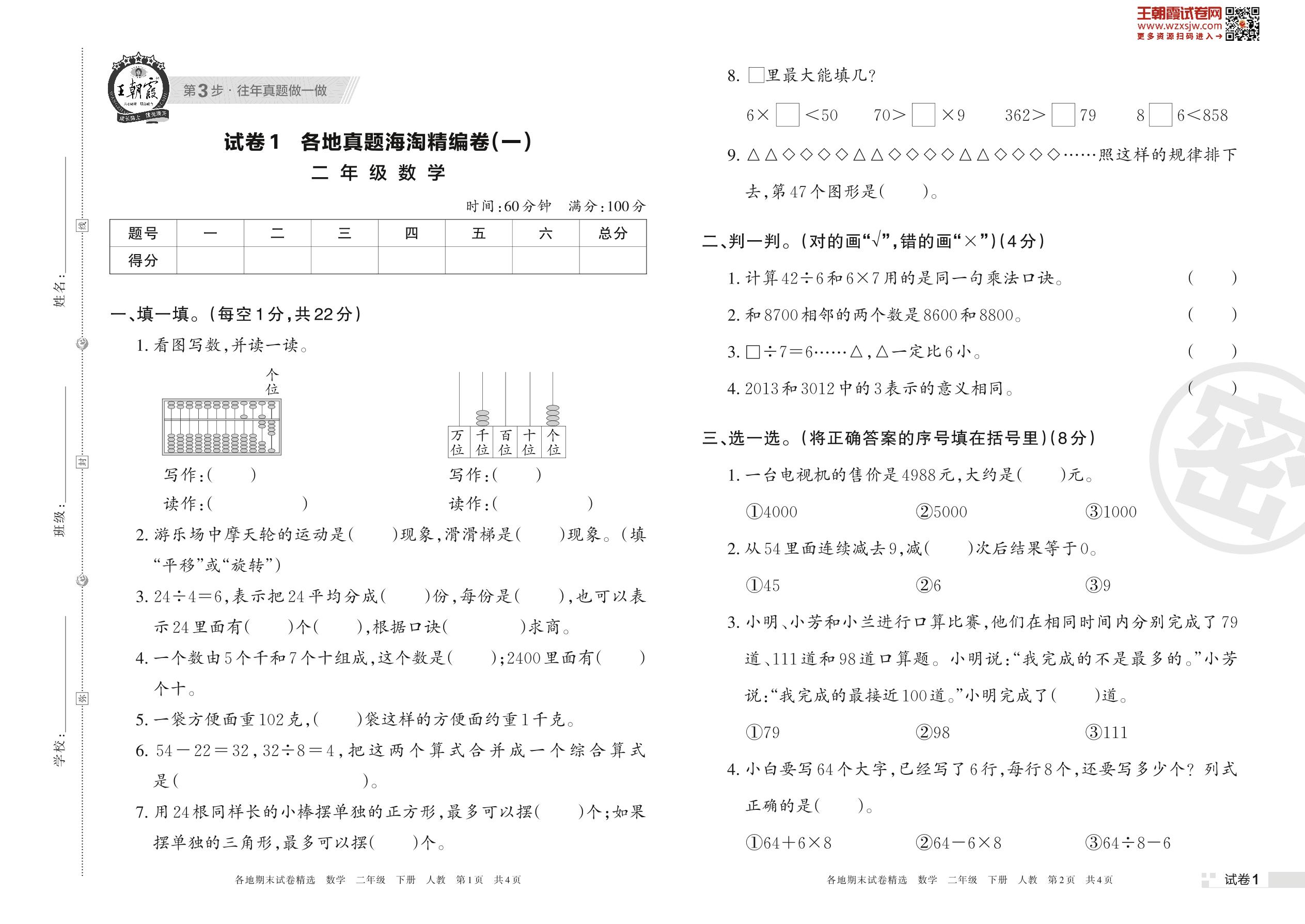 各地真题海淘精编卷(一)二年级下册数学(人教版)_R230419151036628【1】