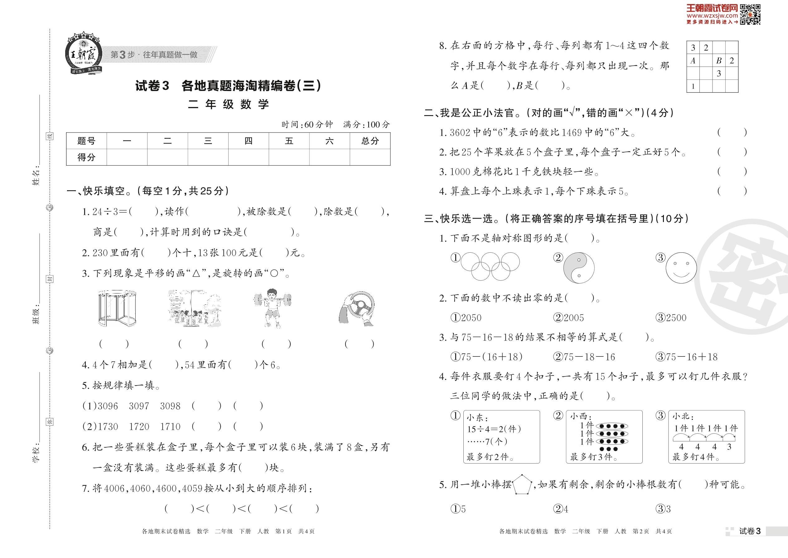 各地真题海淘精编卷(三)二年级下册数学(人教版)_R230419151037539【3】