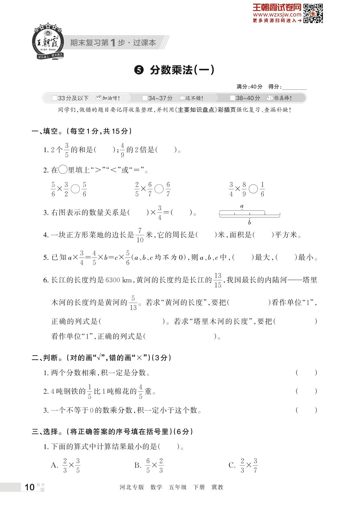 王朝霞期末过课本——5 分数乘法(一)五年级下册数学(冀教版)