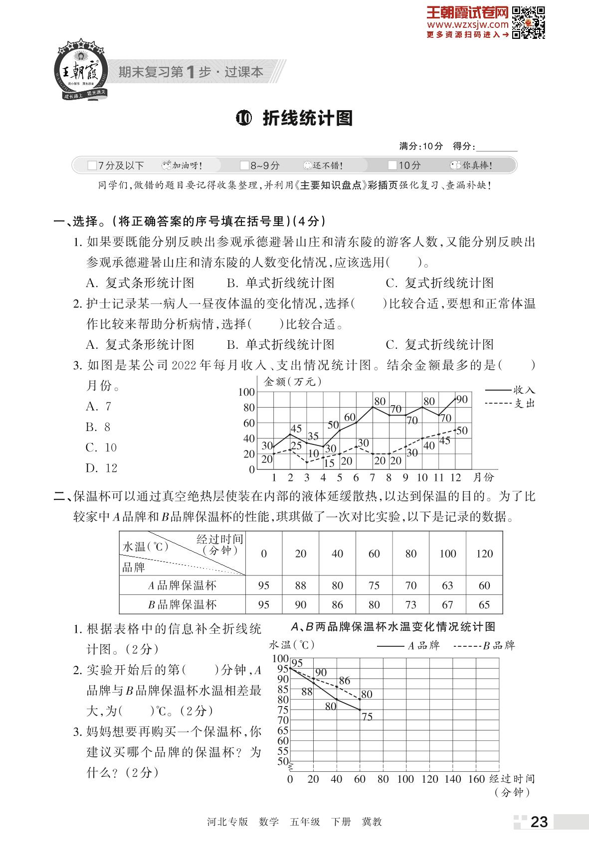 王朝霞期末过课本——10 折线统计图五年级下册数学(冀教版)