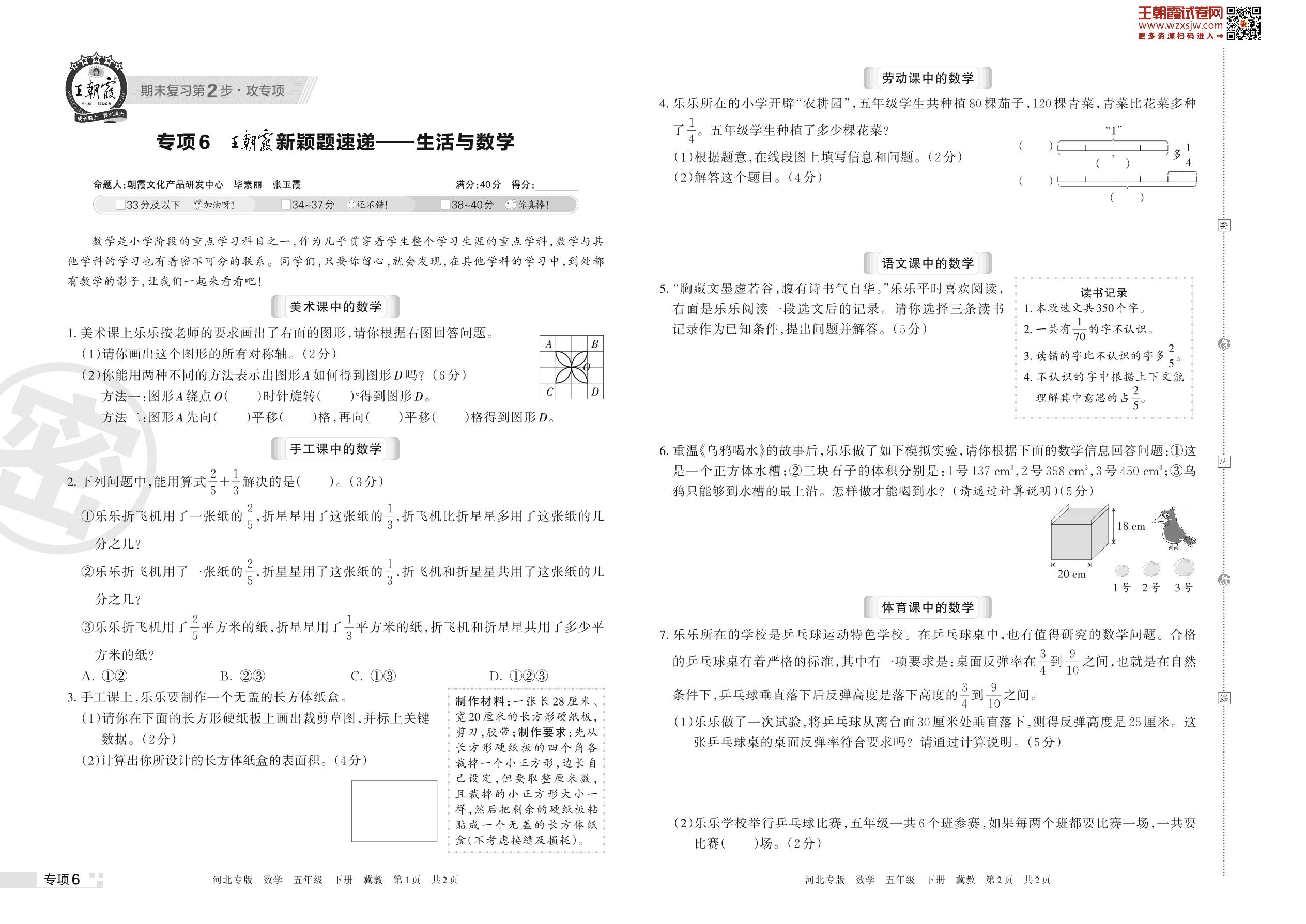 王朝霞期末专项卷——王朝霞新颖题速递:生活与数学五年级下册数学(冀教版)【6】