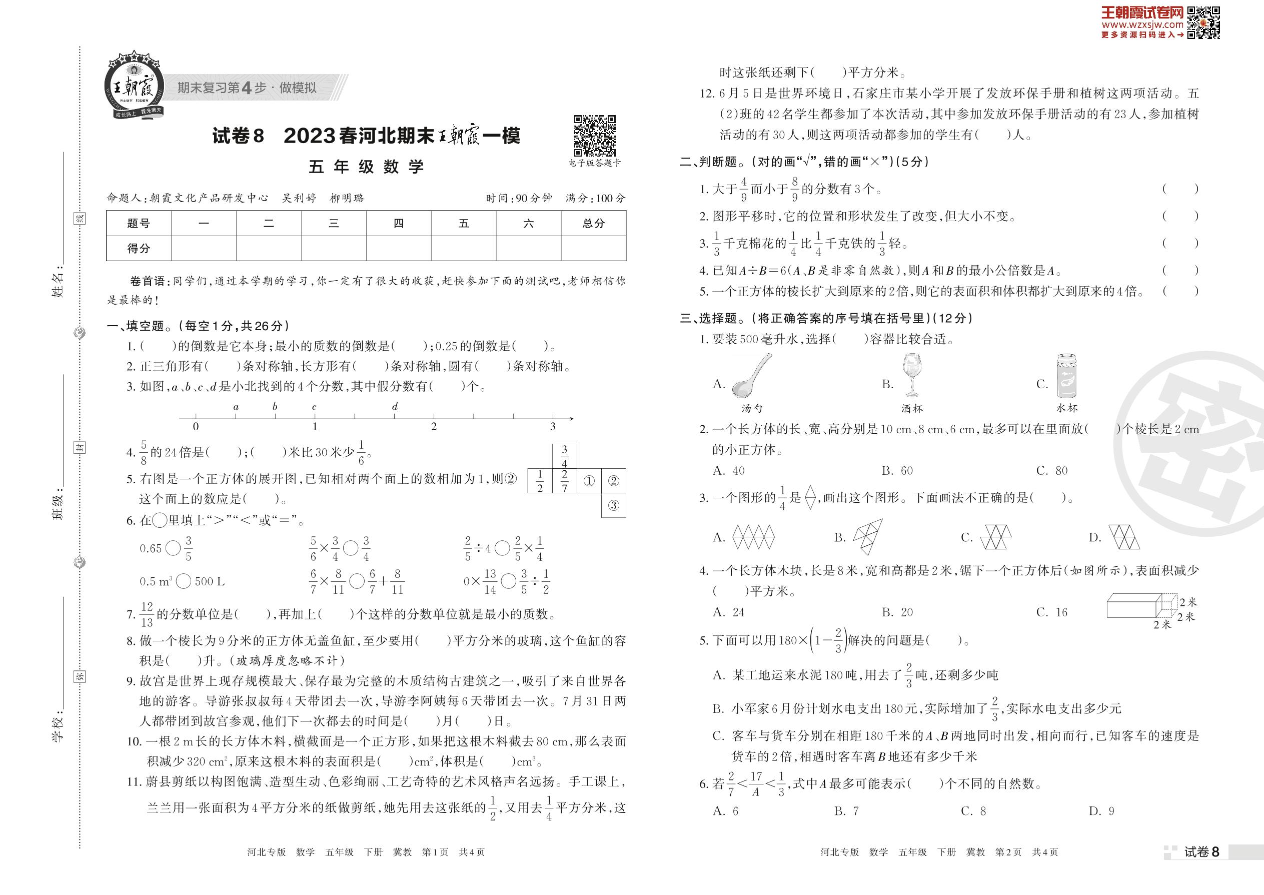 王朝霞期末模拟卷五年级下册数学(冀教版)_R230419151456208【8】