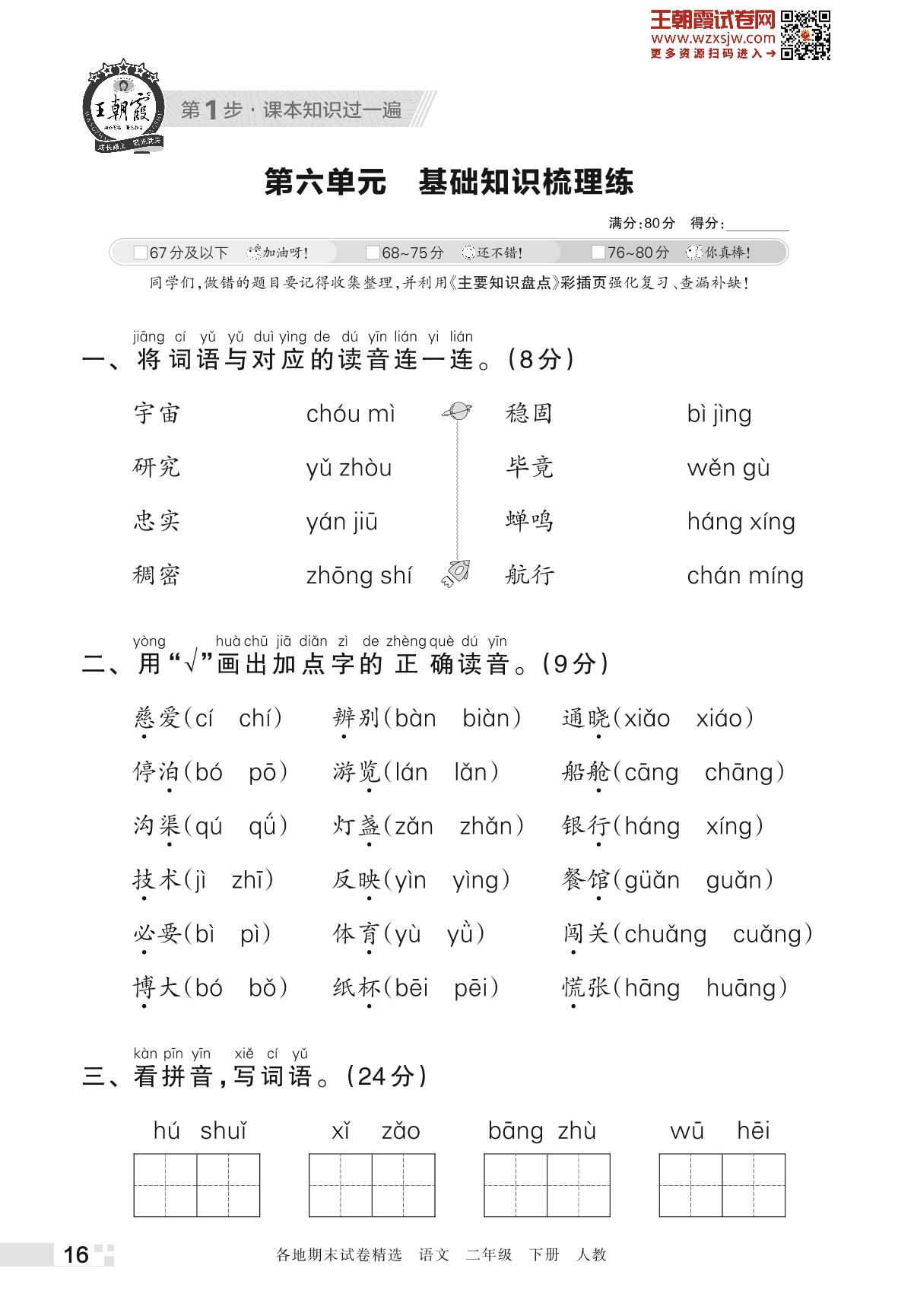 王朝霞期末过课本——第六单元 基础知识梳理练二年级下册语文(人教版)_R230419151941148