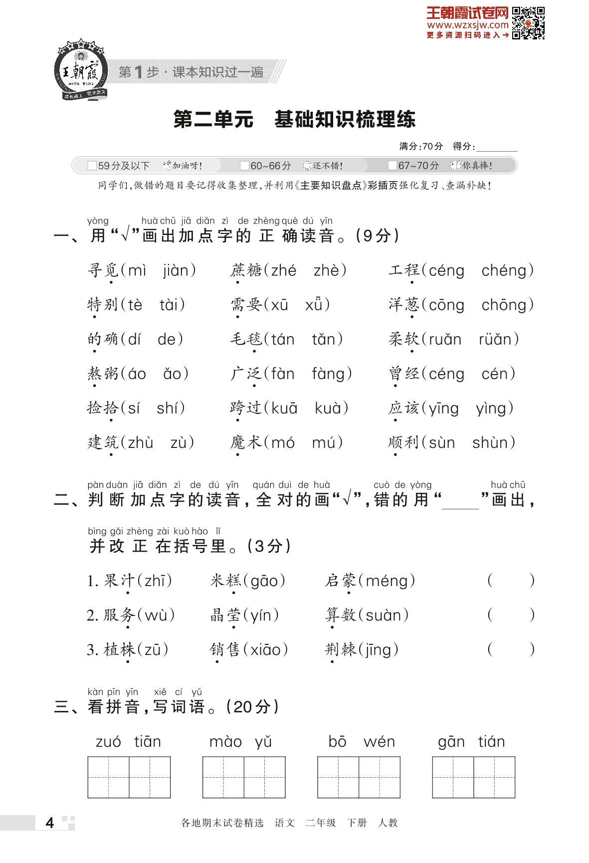 王朝霞期末过课本——第二单元 基础知识梳理练二年级下册语文(人教版)_R230419151941159