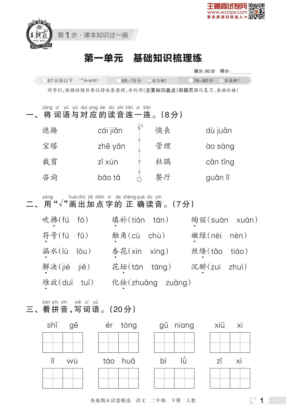 王朝霞期末过课本——第一单元 基础知识梳理练二年级下册语文(人教版)_R230419151942433