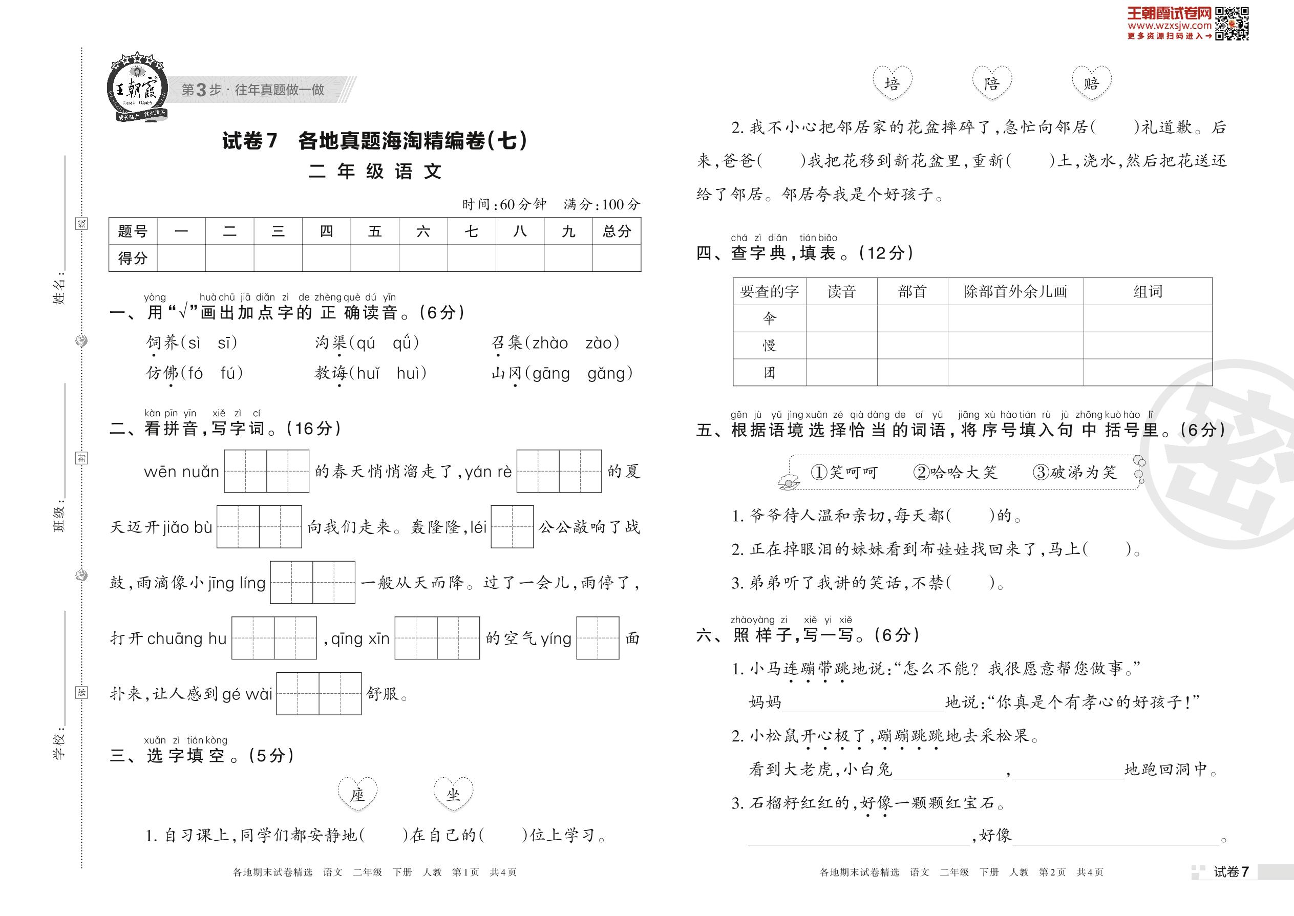 二年级语文人教版下册期末卷