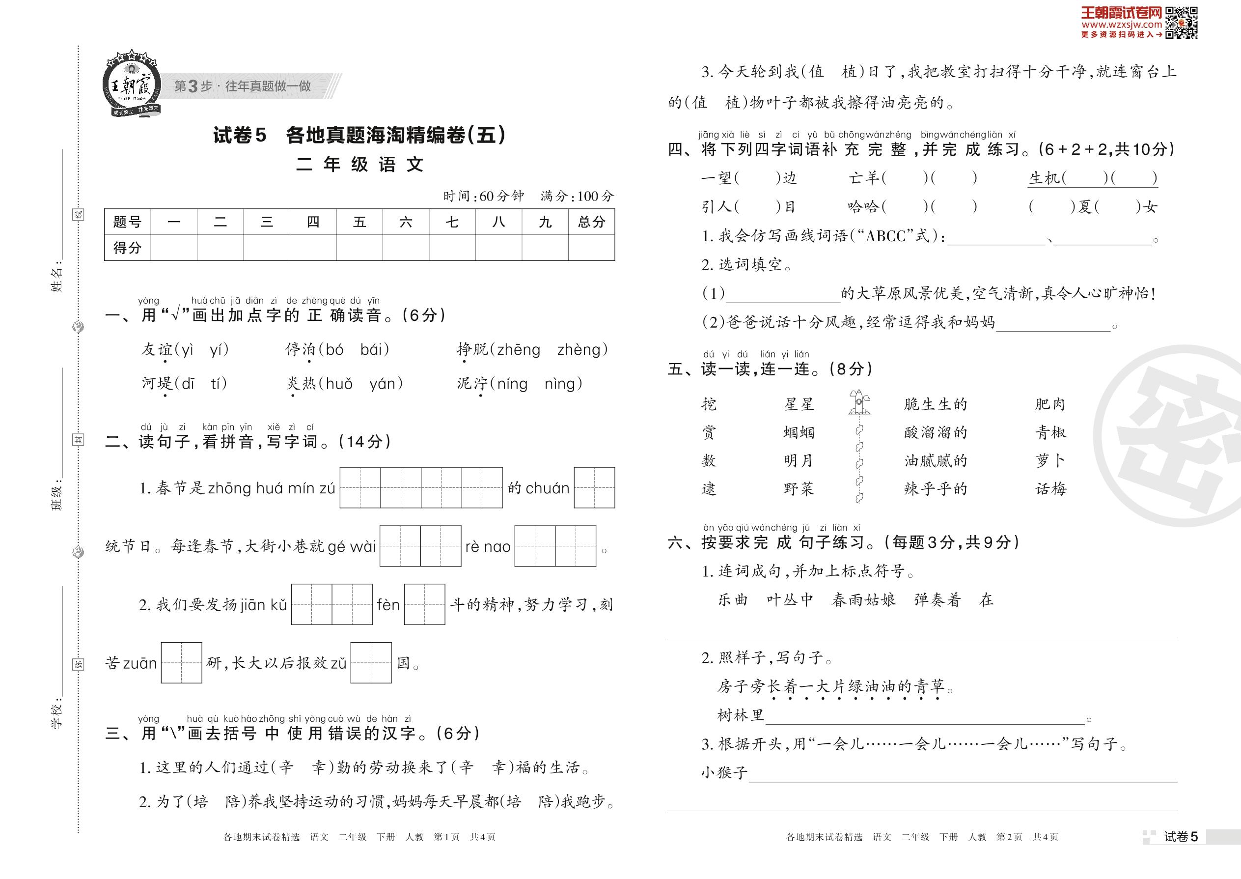 各地真题海淘精编卷(五)二年级下册语文(人教版)_R230419151943271【5】