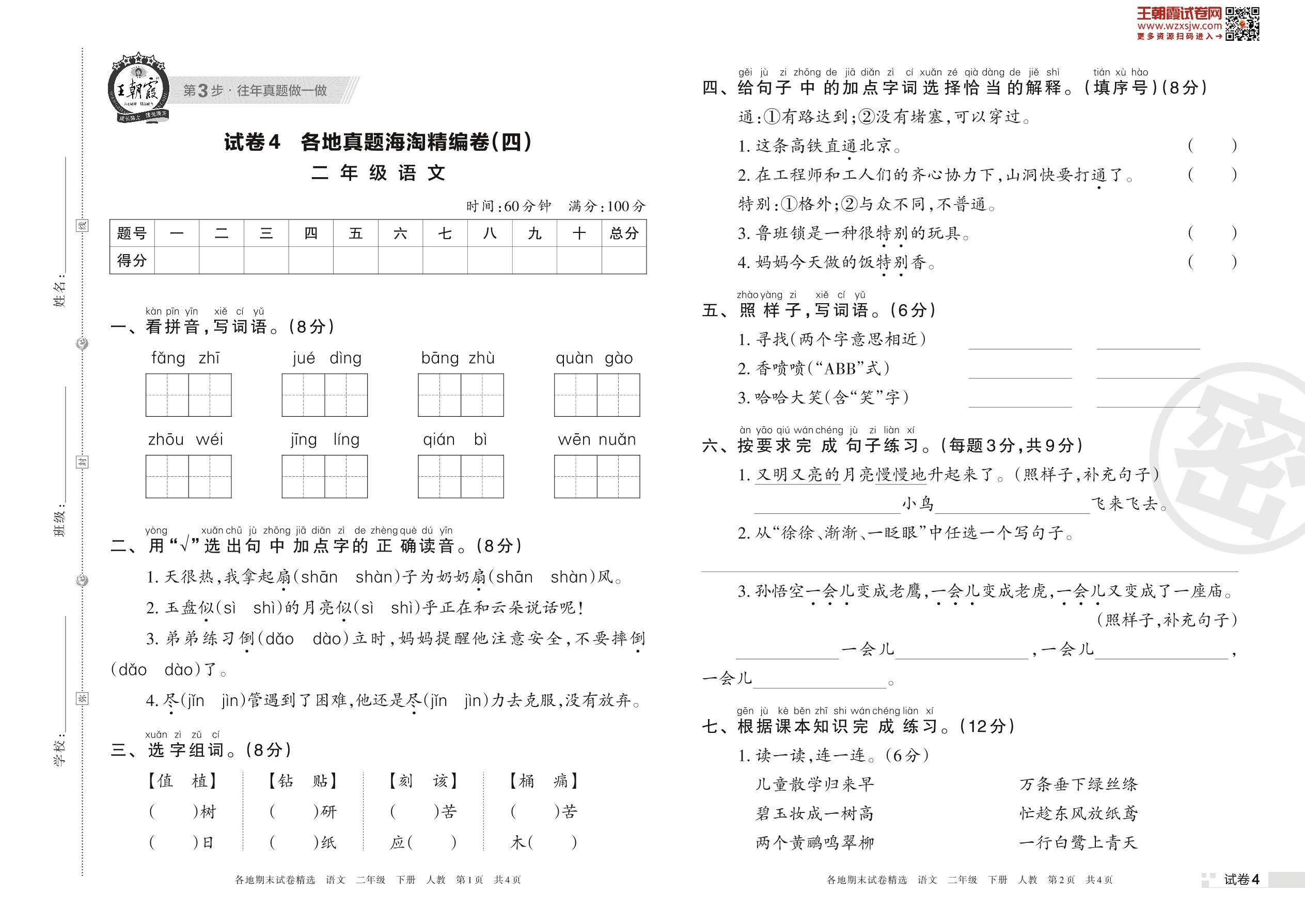 各地真题海淘精编卷(四)二年级下册语文(人教版)_R230419151943807【4】