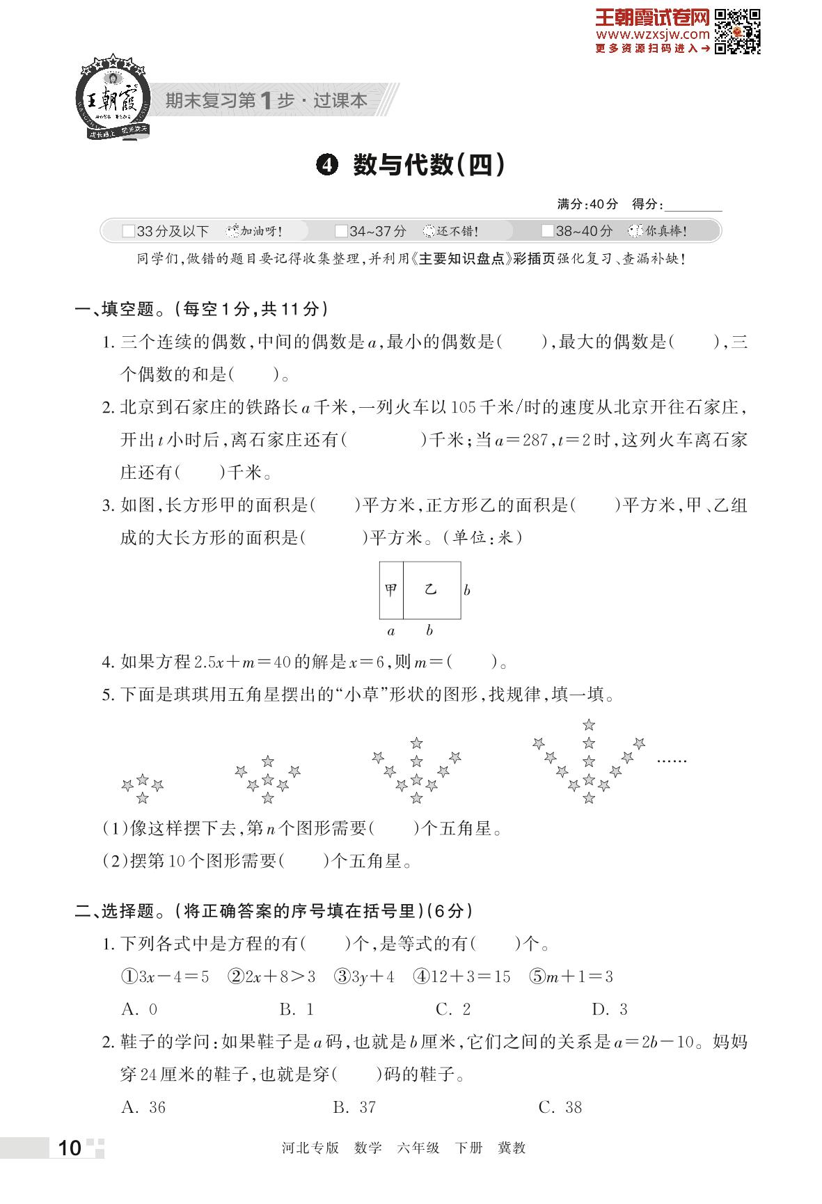 王朝霞期末过课本——4 数与代数(四)六年级下册数学(冀教版)