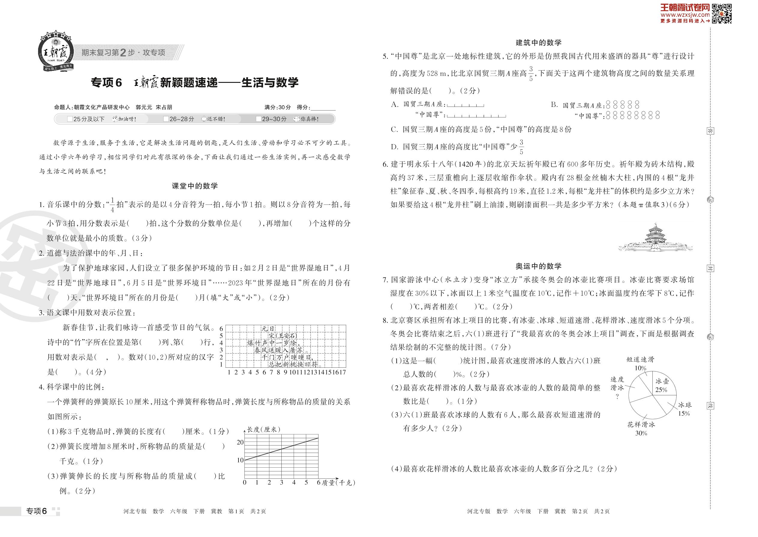 王朝霞期末专项卷——王朝霞新颖题速递:生活与数学六年级下册数学(冀教版)【6】