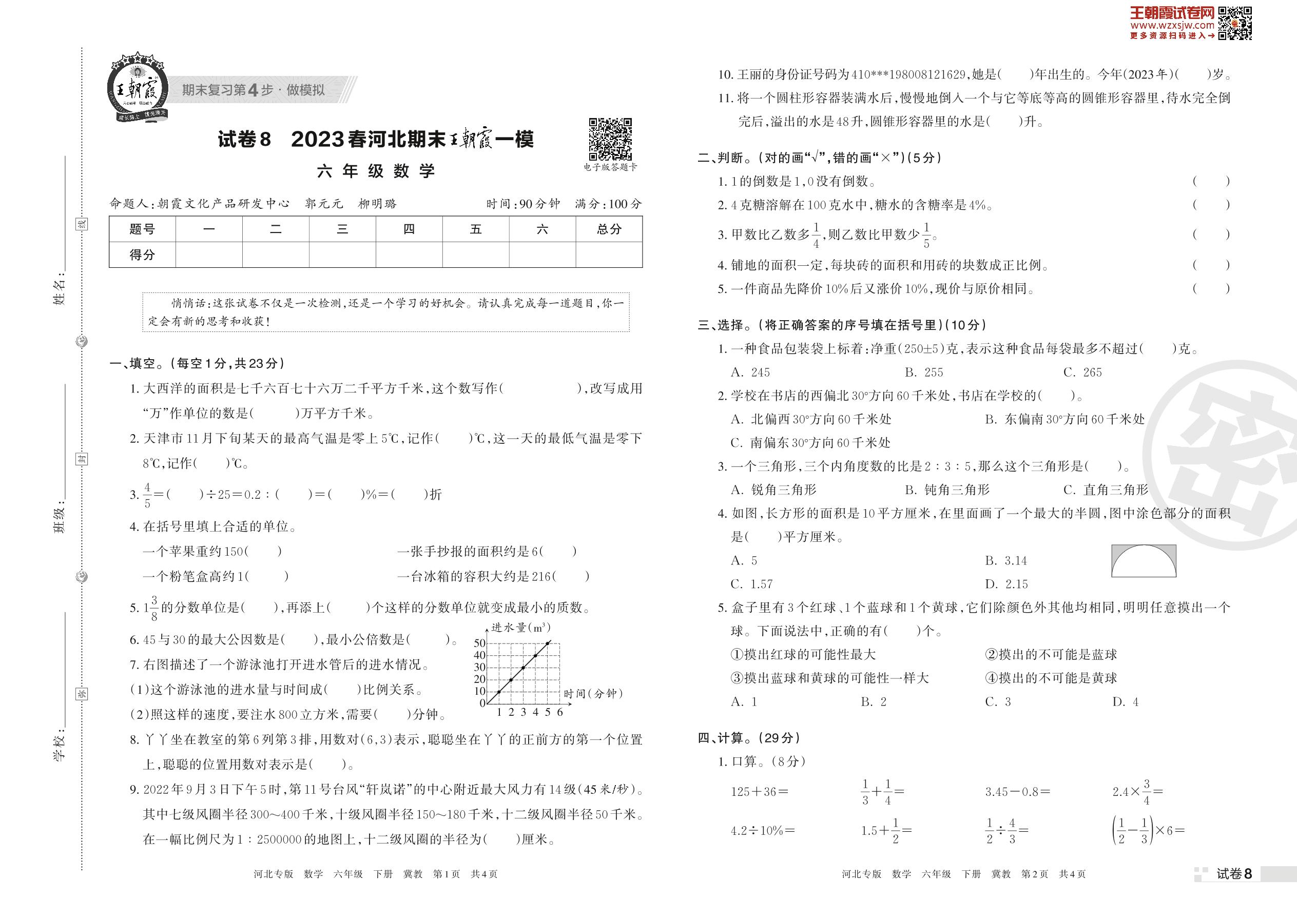 王朝霞期末模拟卷六年级下册数学(冀教版)【8】