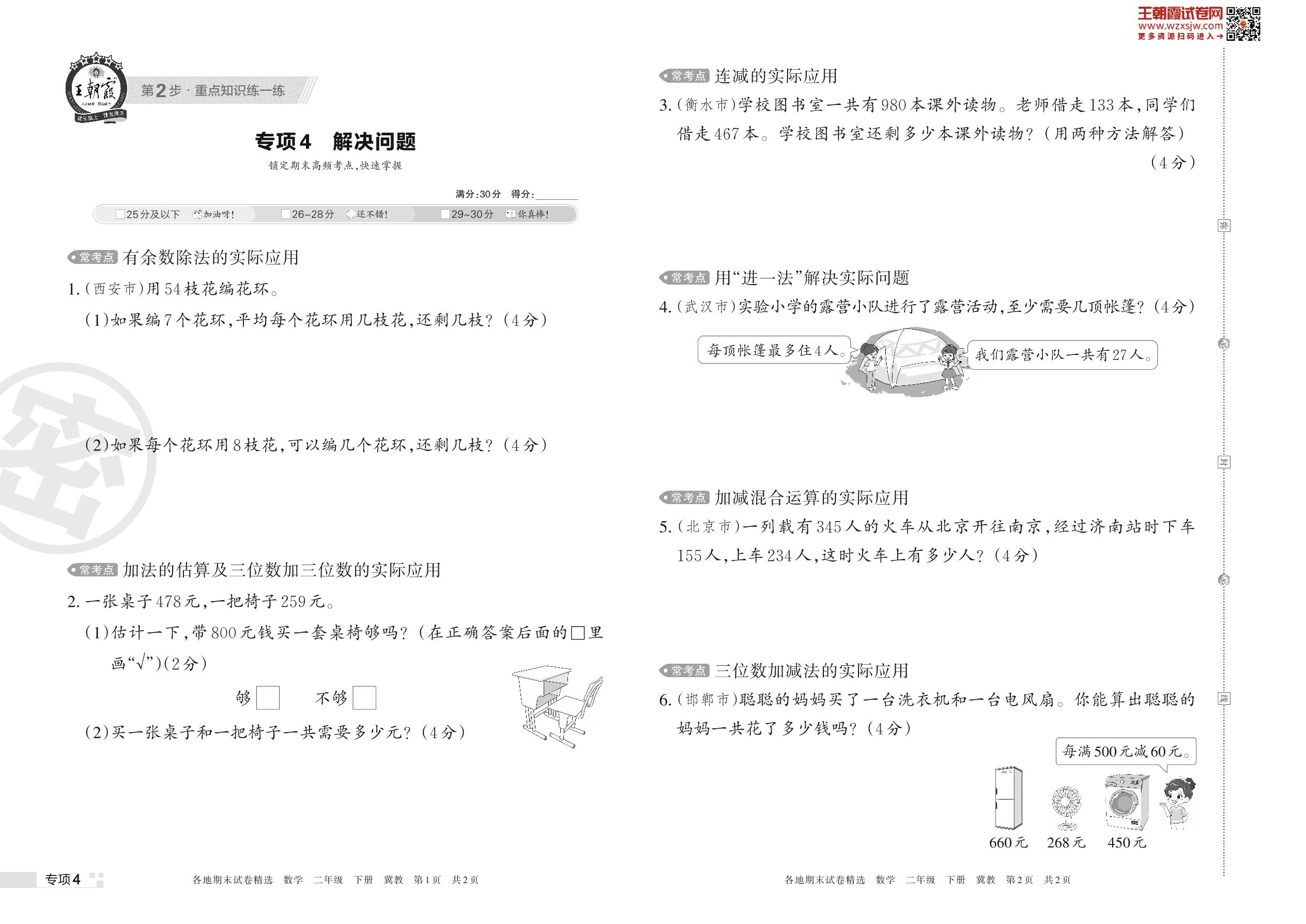 王朝霞期末专项卷——解决问题二年级下册数学(冀教版)_R230419152639311【4】