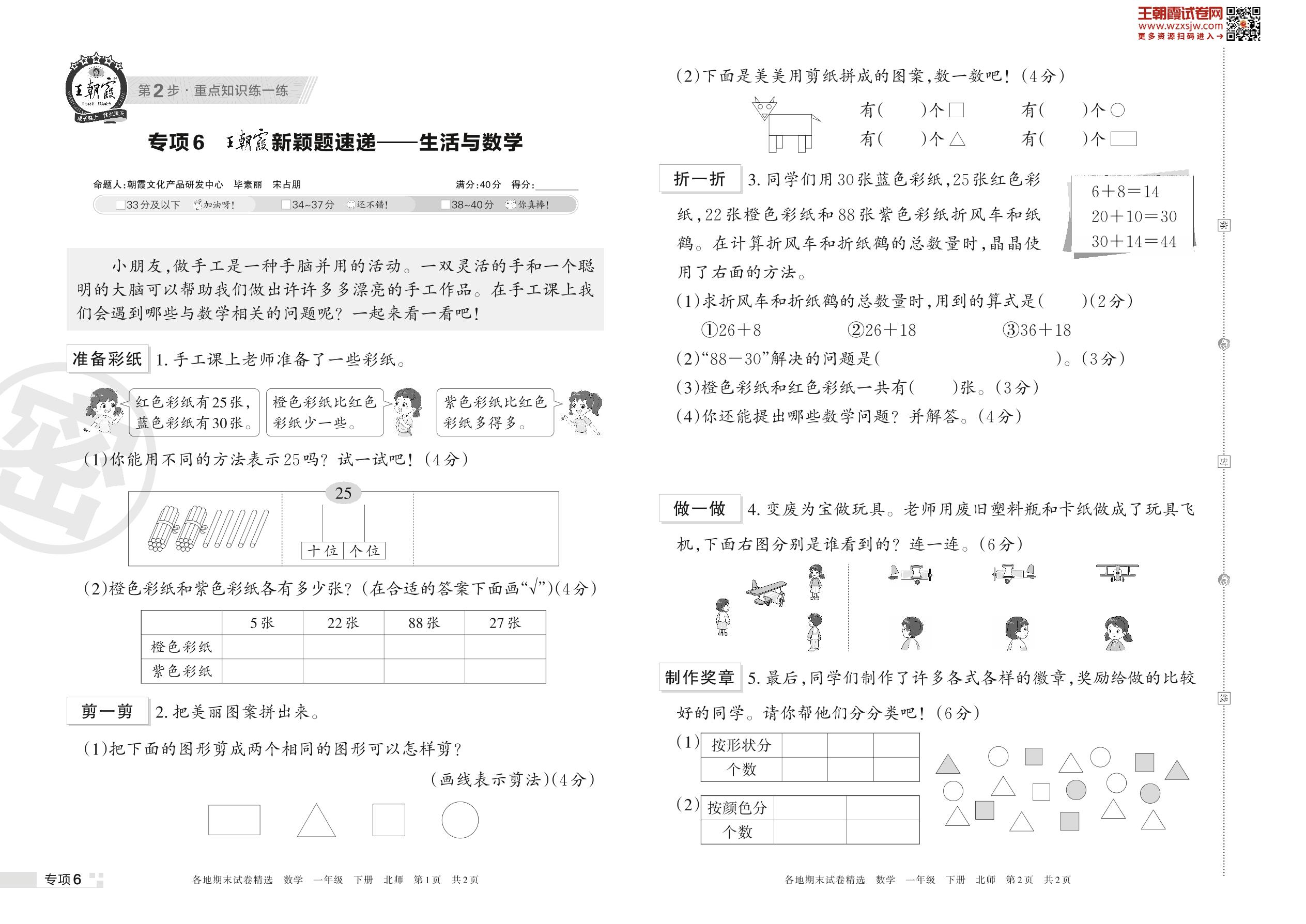 王朝霞期末专项卷——王朝霞新颖题速递:生活与数学一年级下册数学(北师版)【6】
