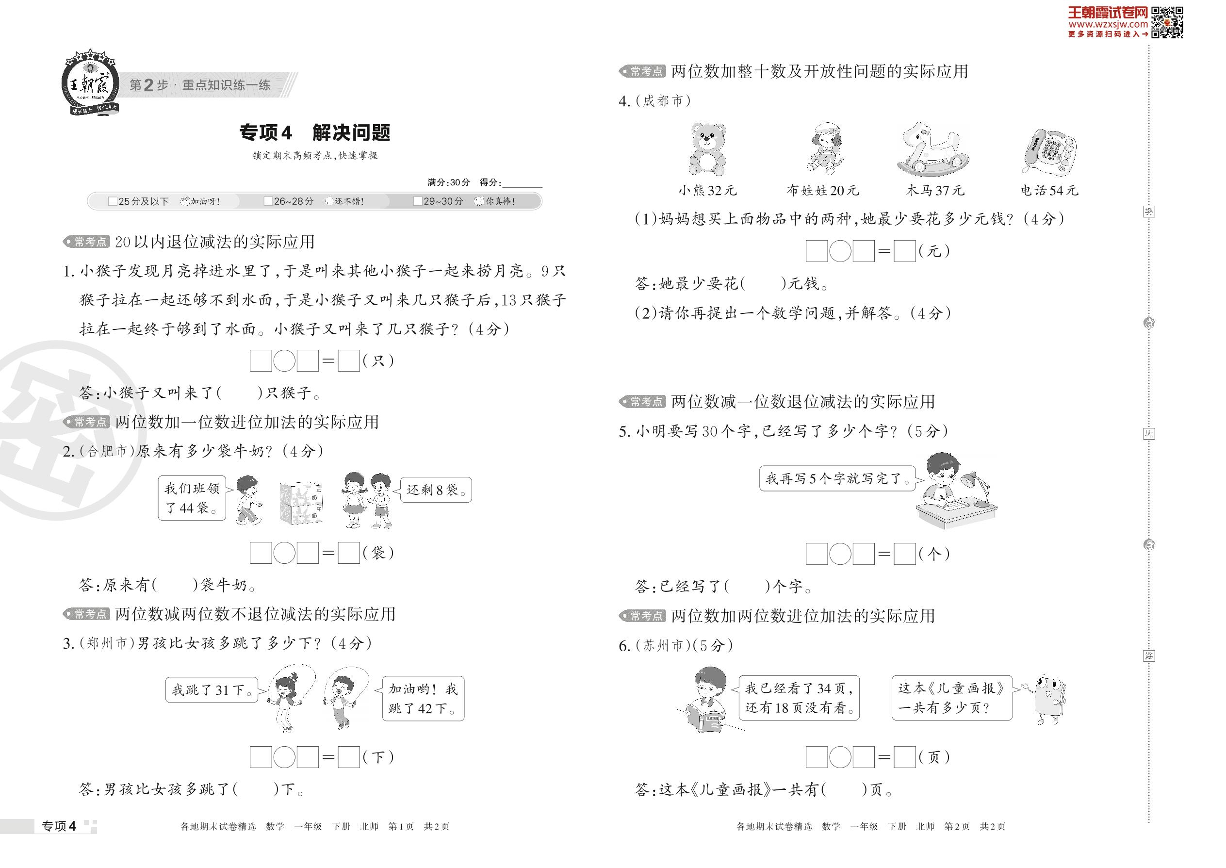 王朝霞期末专项卷——解决问题一年级下册数学(北师版)_R230419153243915【4】