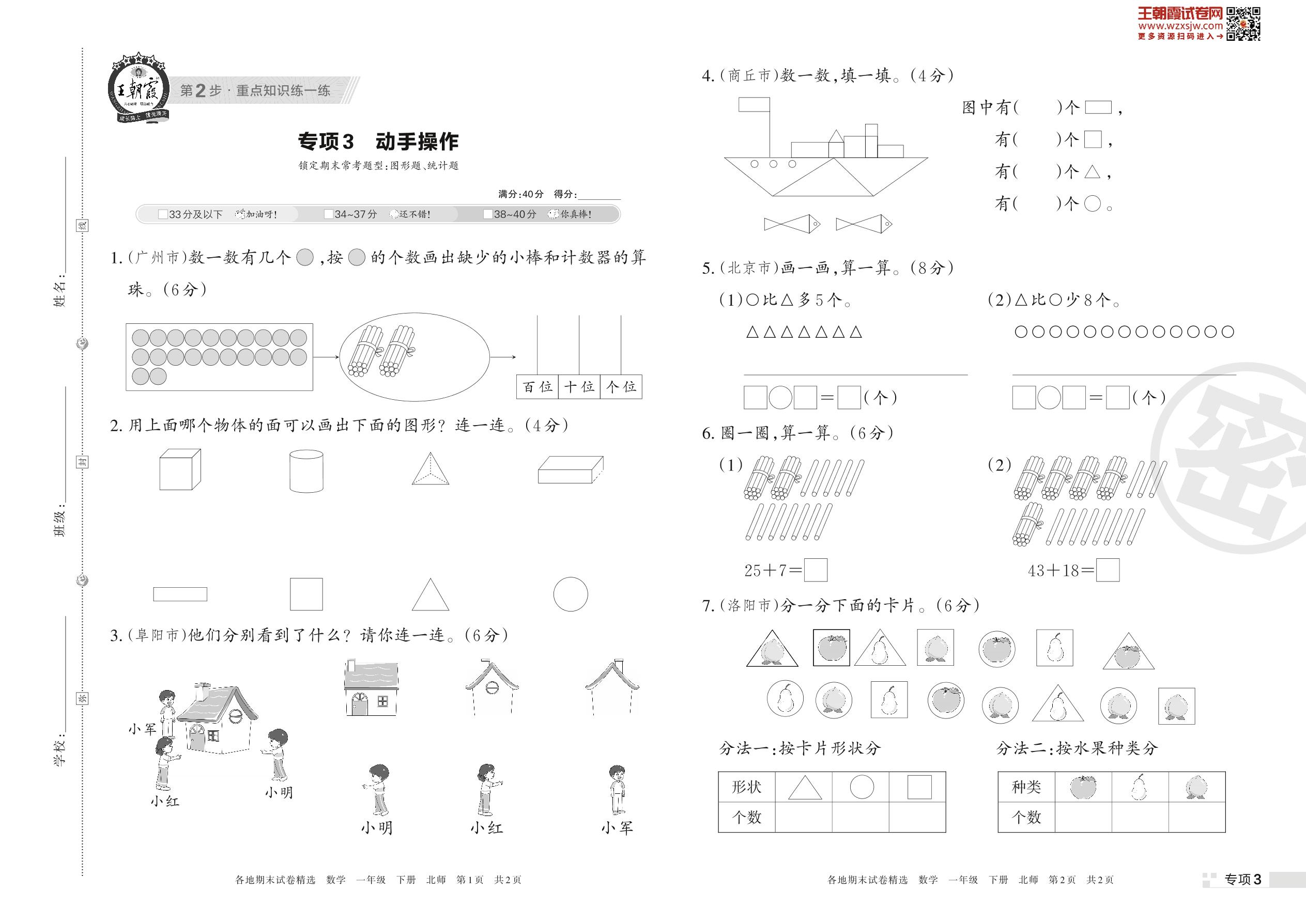 王朝霞期末专项卷——动手操作一年级下册数学(北师版)_R230419153243382【3】