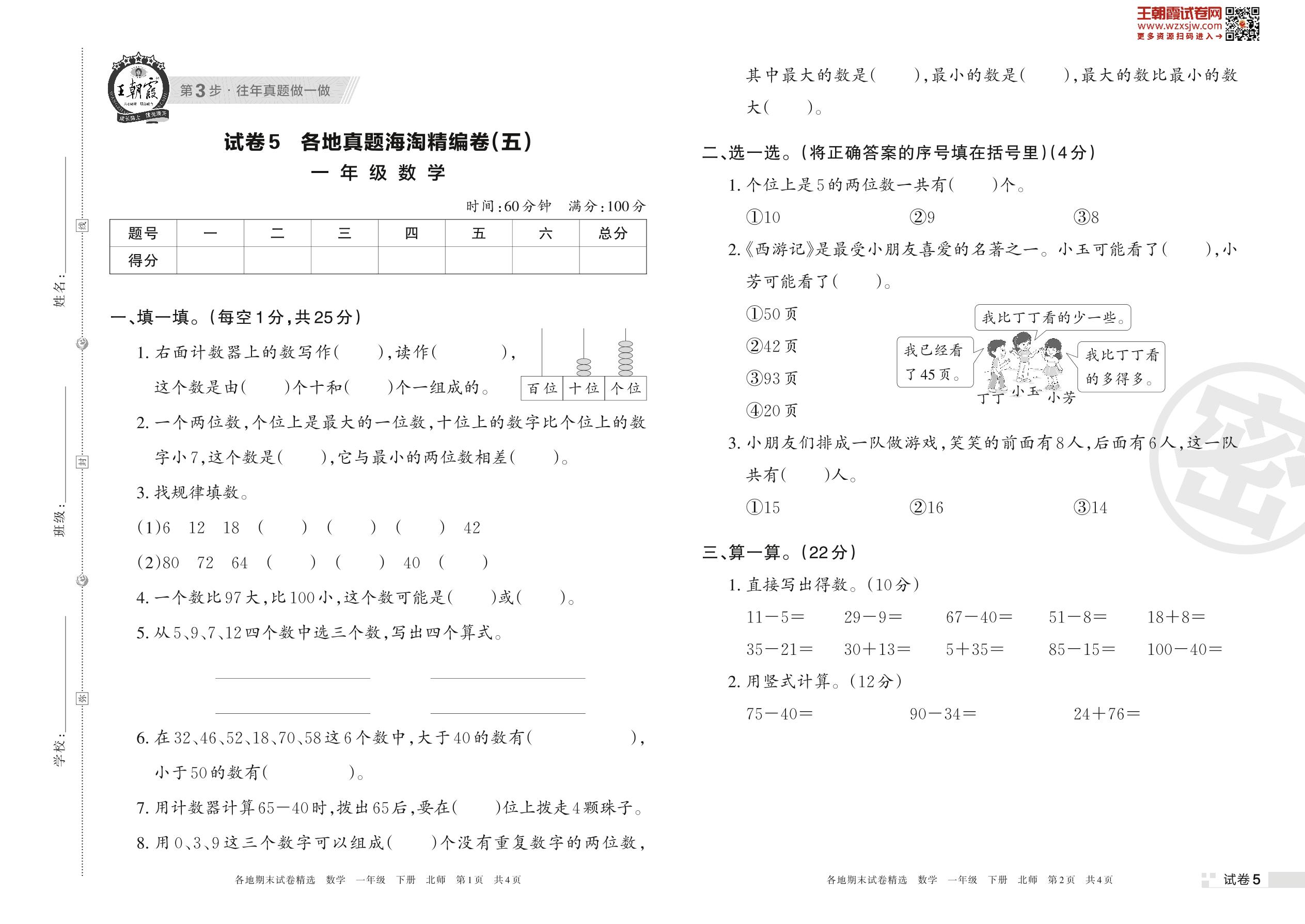 各地真题海淘精编卷(五)一年级下册数学(北师版)_R230419153244208【5】
