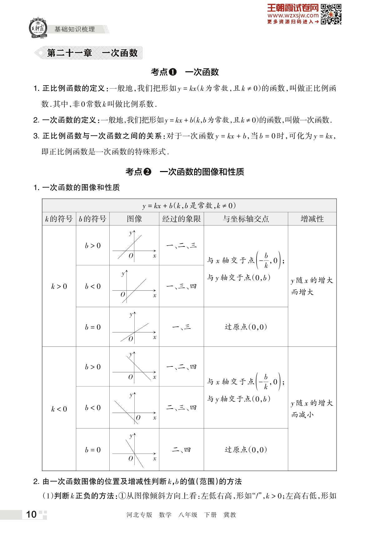 王朝霞期末知识梳理——第二十一章 一次函数八年级下册数学(冀教版)