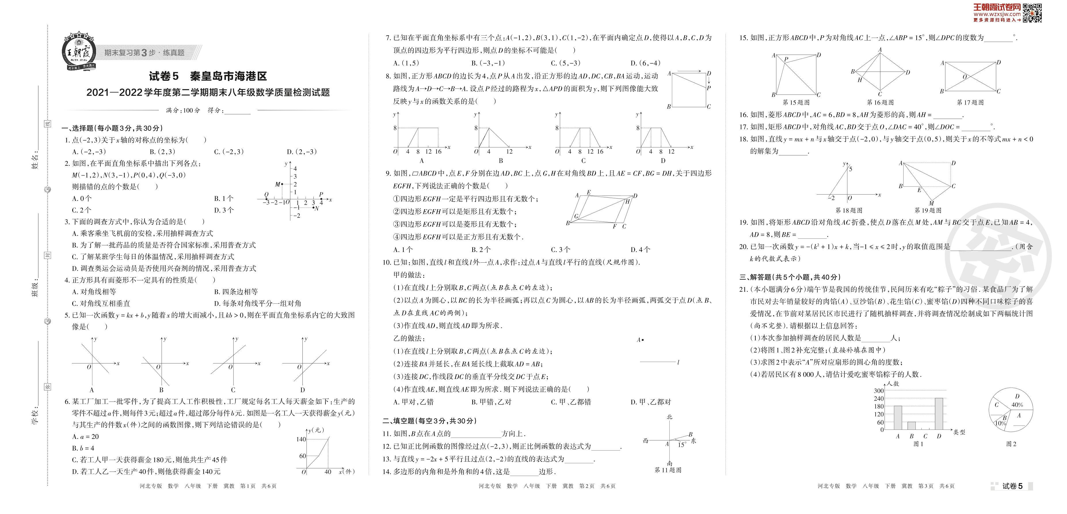 秦皇岛市海港区2021—2022学年第二学期期末八年级数学教学质量检测试卷(冀教版)【5】