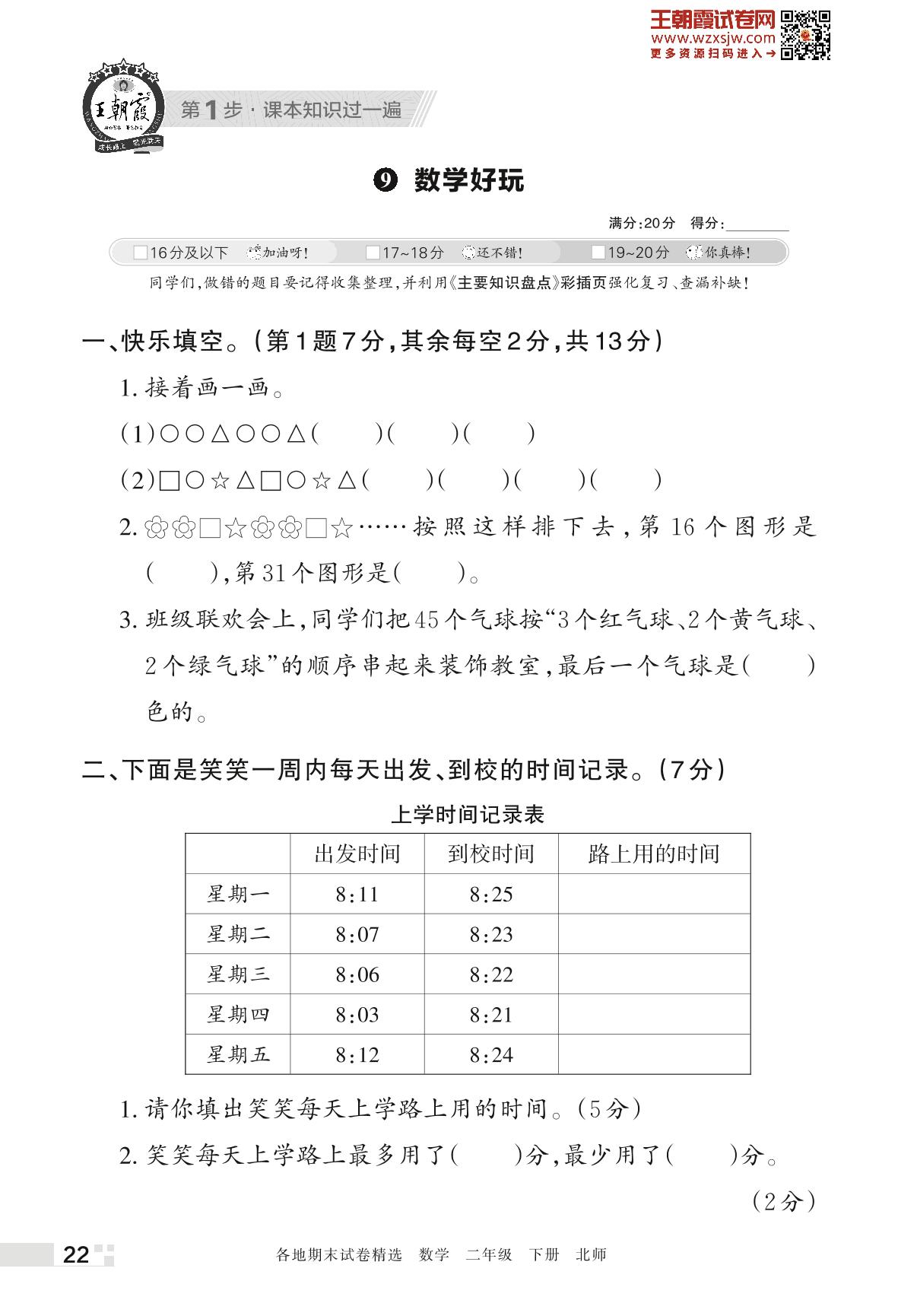 王朝霞期末过课本——9 数学好玩二年级下册数学(北师版)