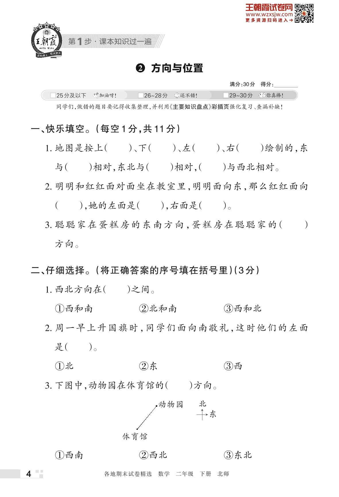 王朝霞期末过课本——2 方向与位置二年级下册数学(北师版)