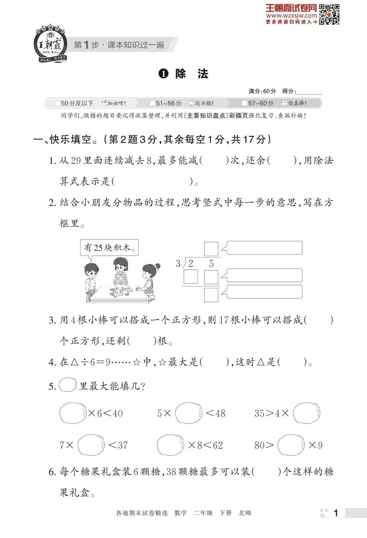 王朝霞期末过课本——1 除法二年级下册数学(北师版)