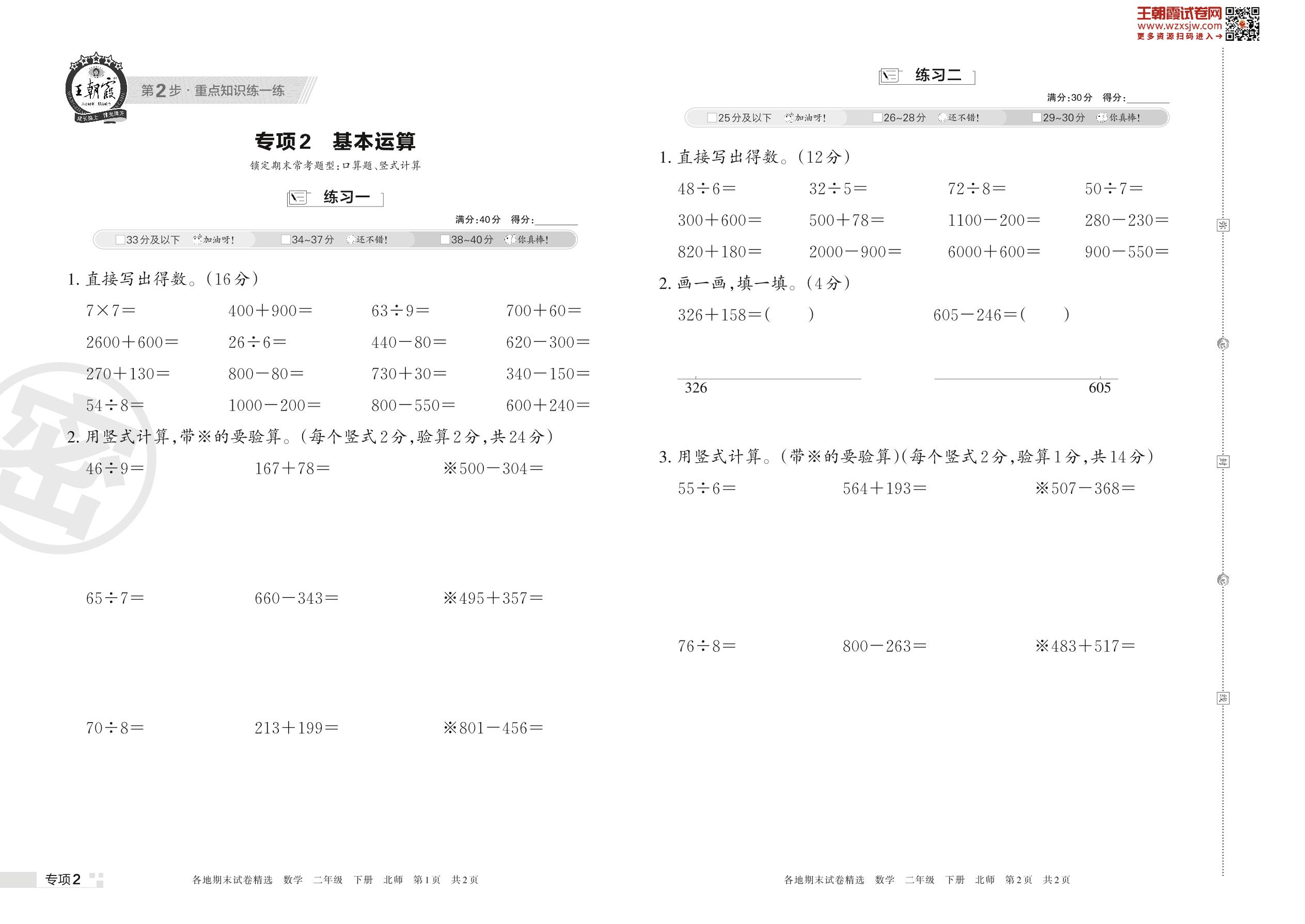 王朝霞期末专项卷——基本运算二年级下册数学(北师版)_R230419154612356【2】