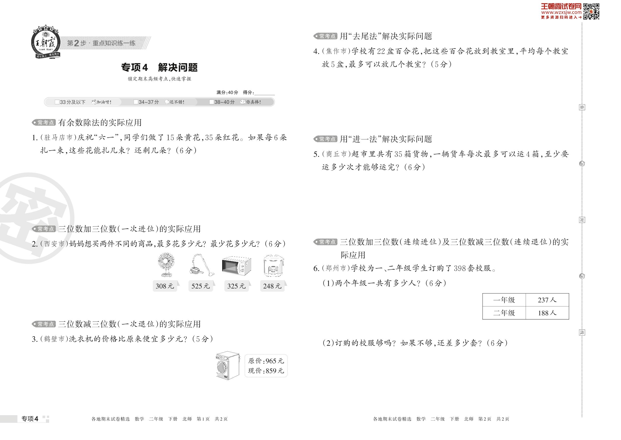 王朝霞期末专项卷——解决问题二年级下册数学(北师版)_R230419154612624【4】