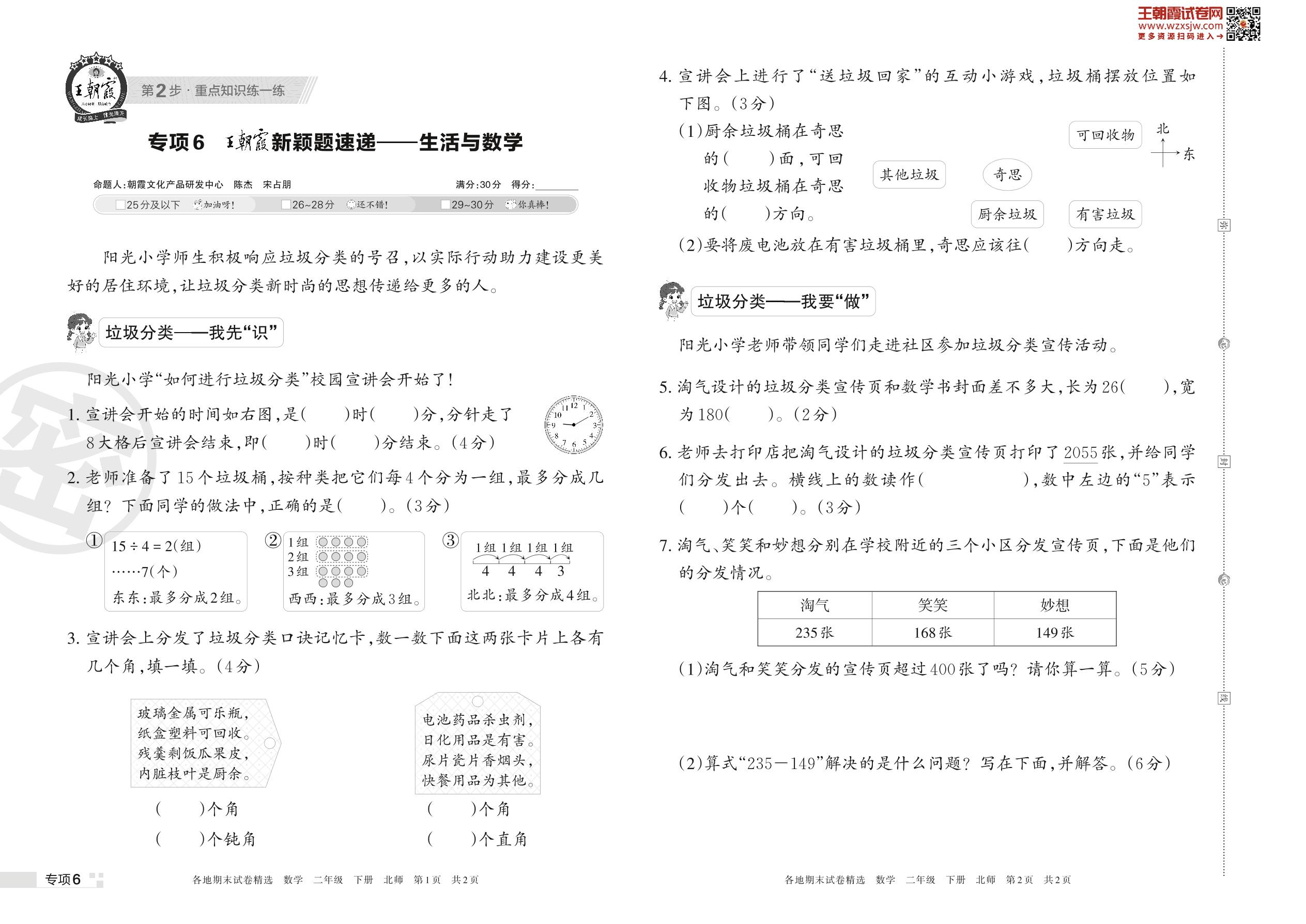 王朝霞期末专项卷——王朝霞新颖题速递:生活与数学二年级下册数学(北师版)【6】
