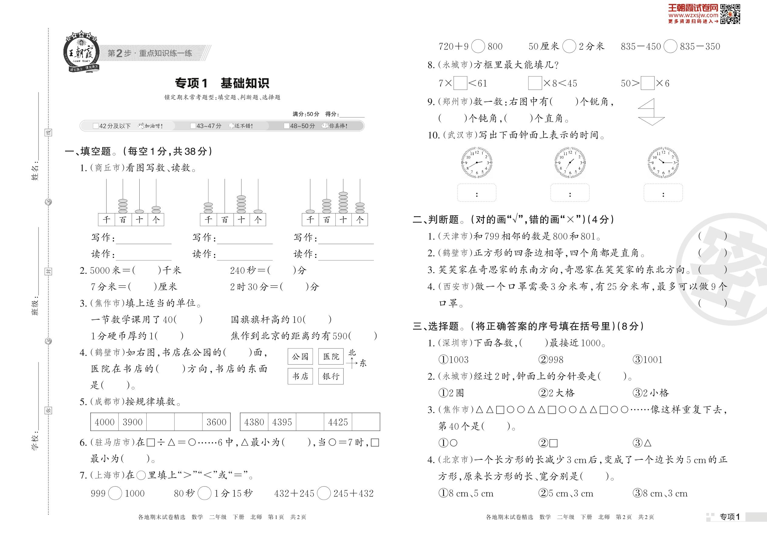 王朝霞期末专项卷——基础知识二年级下册数学(北师版)_R230419154612531【1】