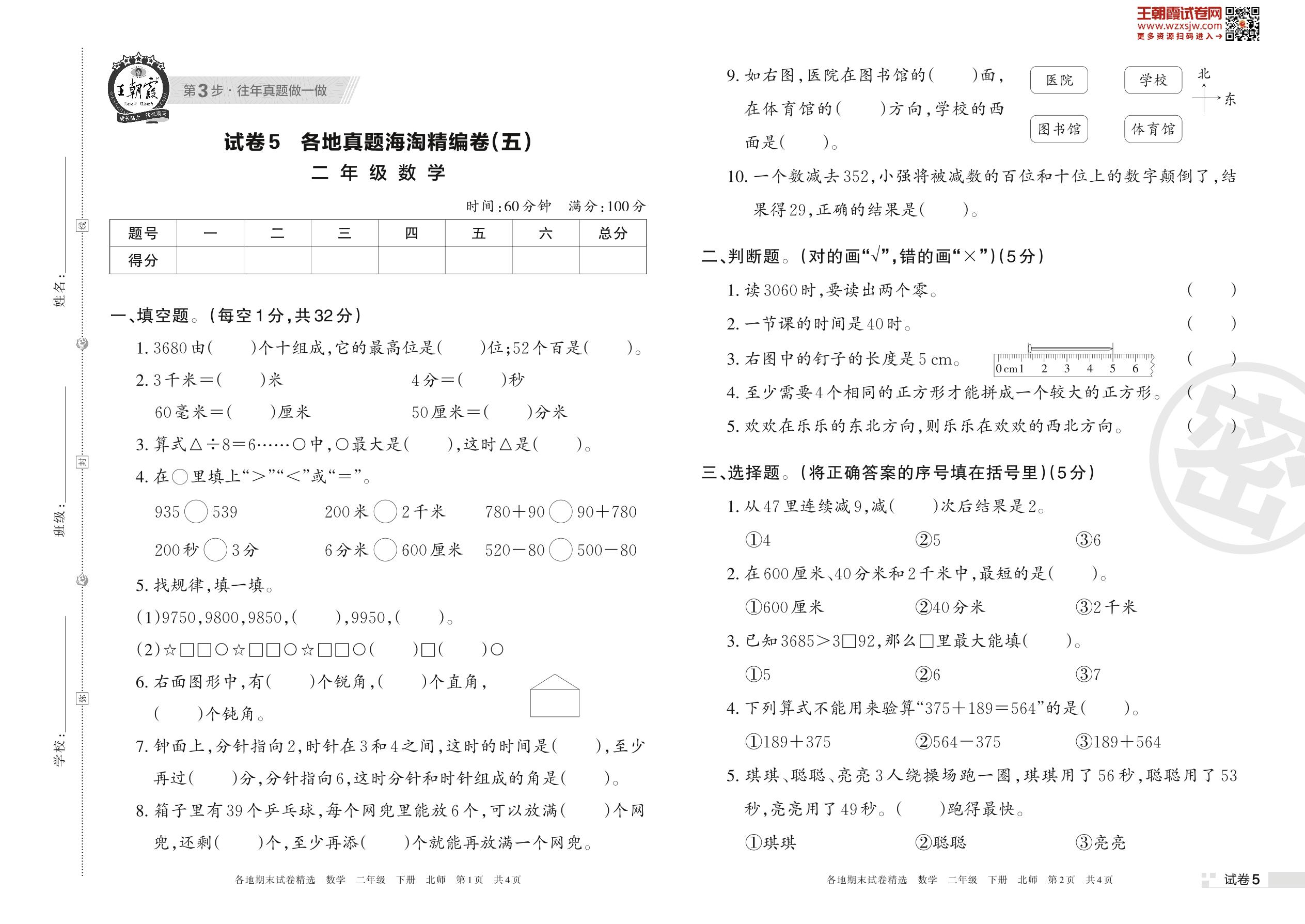各地真题海淘精编卷(五)二年级下册数学(北师版)_R230419154613802【5】